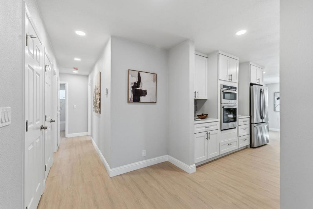 Move-in ready! Beautifully remodeled 3-bedroom, 2-bath home with a separate family room, offering 1,406 sq ft of living space on a 5,985 sq ft lot with a large backyard perfect for entertaining or relaxing. This home has been completely remodeled from floor to roof and wall to wall. The modern kitchen features new cabinetry, quartz countertops, a stylish modern hood, brand-new appliances, and space for an eat-in kitchen. Both bathrooms have been upgraded with quartz stone shower walls (one-piece or three-piece panels), new vanities, and modern plumbing fixtures. Additional upgrades include new double-pane windows, new interior doors, new flooring throughout, fresh interior and exterior paint, and a brand-new roof. The home also features a new AC and central heating system for year-round comfort. The garage has finished sheetrock walls and a new garage door. Conveniently located near shopping centers, public transportation, and with easy access to Highways U.S. Route 101 and Interstate 280.