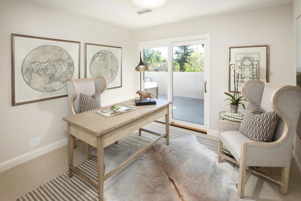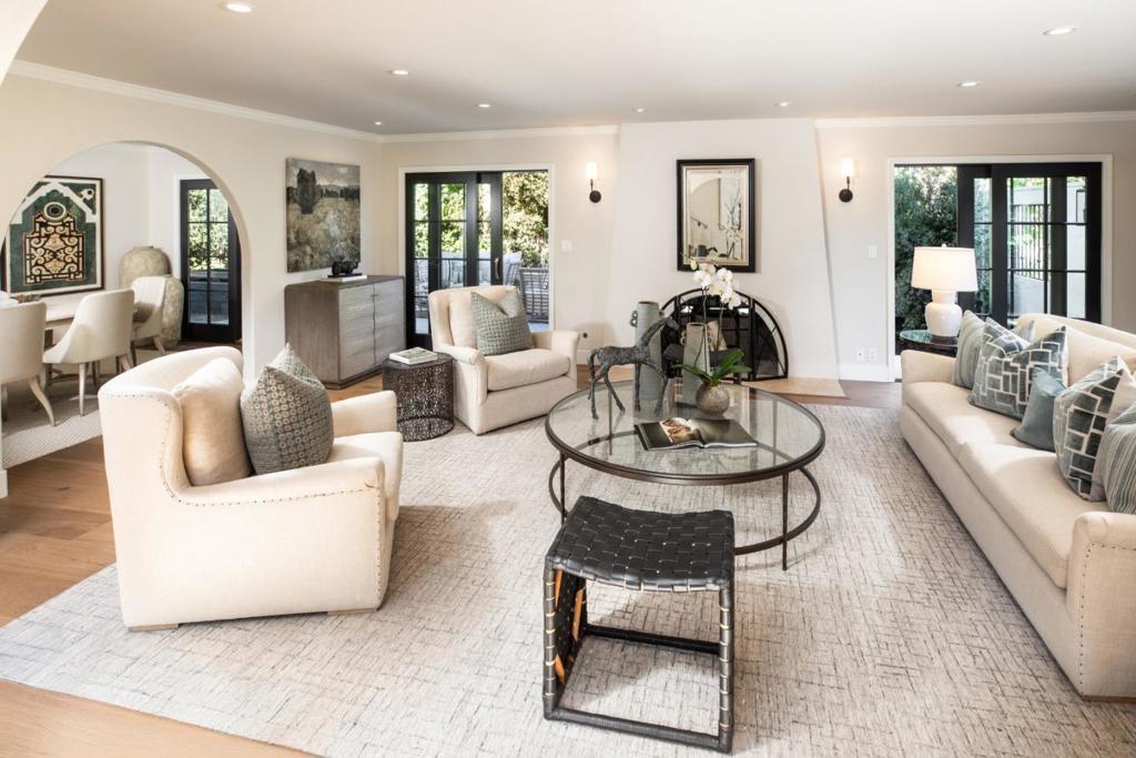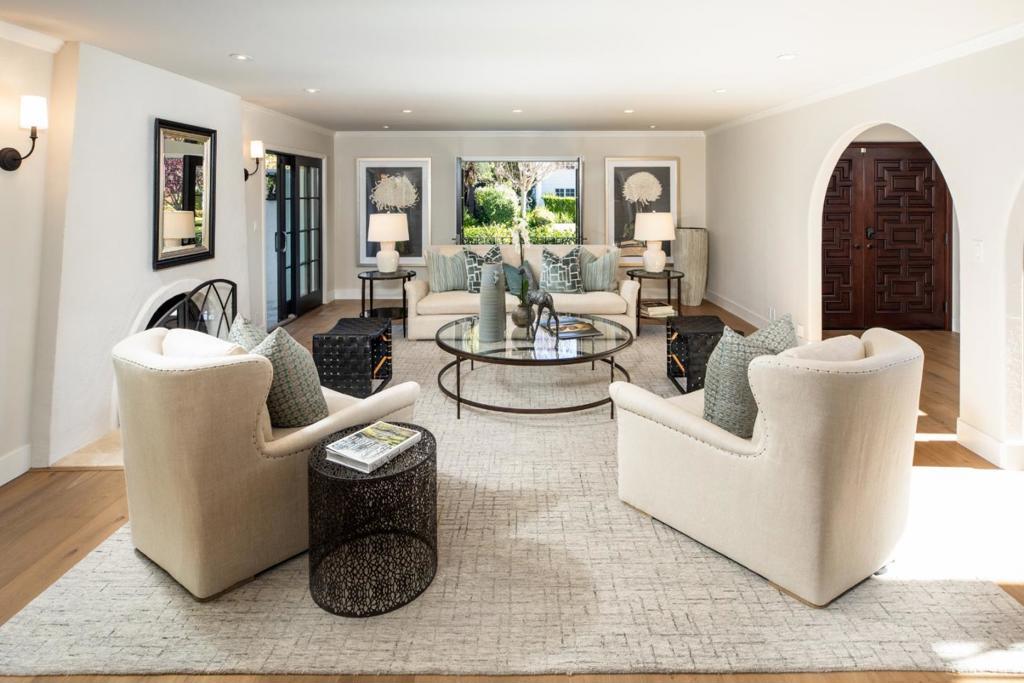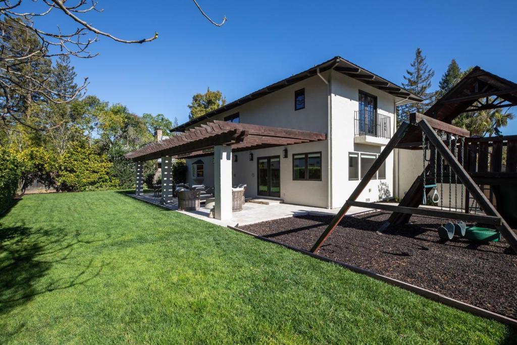 Gracefully set on a peaceful cul-de-sac, this magnificent Mediterranean-inspired residence blends timeless architecture with modern luxury in a coveted Menlo Park neighborhood. A dramatic foyer welcomes you with soaring ceilings, a sweeping curved staircase, arched windows, and a dazzling chandelier. Elegant living and dining rooms feature crown molding, arched openings, and doors opening to inviting patios. The stunning chefs kitchen boasts stainless steel appliances including a Thermador 6-burner cooktop & refrigerator, bay window, and a spacious island, flowing into an expansive family room with backyard access and a stylish bar. A versatile flex room with built-ins offers space for a study, office, or casual dining. The luxurious primary suite features French doors to a Juliette balcony and private terrace, plus a spa-inspired bath with soaking tub, large shower, heated floors, skylight, and walk-in closet. Beautifully landscaped grounds offer lush lawn, travertine patios, pergola with heaters, citrus and fig trees, and a play area. Additional highlights include a 3-car garage with Tesla charger, A/C, dual-zone heating, Sonos speakers, tankless water heater, and new hardwood floors. Ideally located near Sand Hill Road, Stanford, dining, Hwy 280 and outstanding schools!