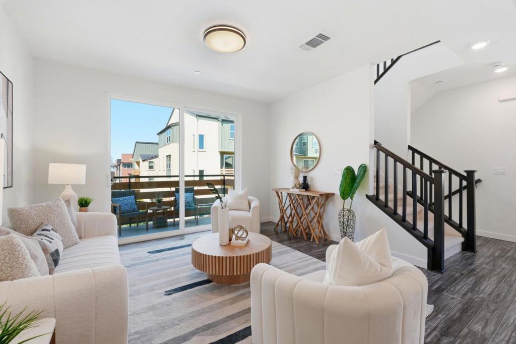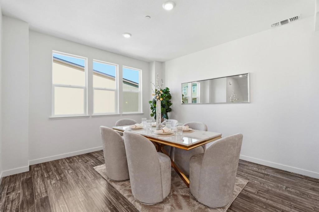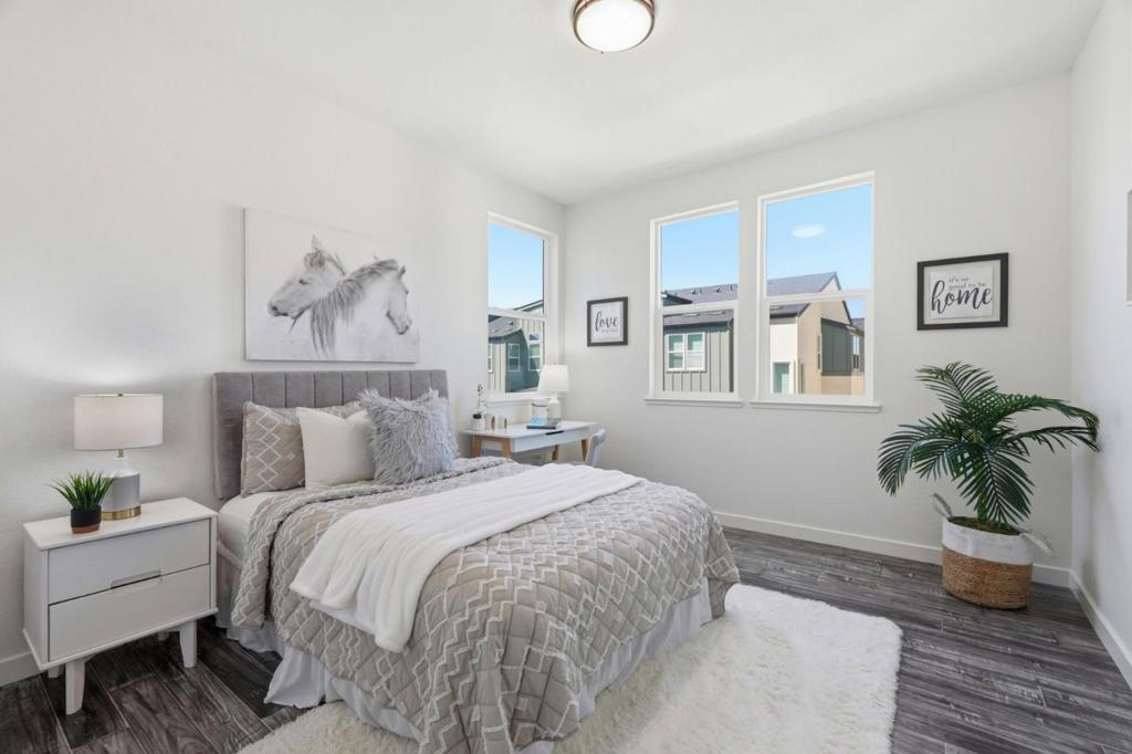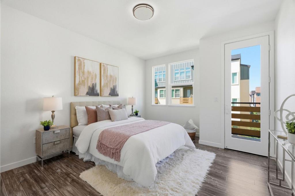 Welcome to one of the largest floor plans in the Onyx community in North San Jose. Built in 2017 by Pulte Homes. This bright end-unit townhouse-style condo features a spacious layout with a formal dining area and a living room with a balcony overlooking the lawn. The gourmet kitchen showcases a large island, stainless steel appliances, a gas cooktop, and custom white cabinetry. The master suite upstairs boasts a dual-sink vanity, a large shower, and a generous walk-in closet with a custom built-in organizer. The additional three bedrooms are perfect for guests, family, or a home office. Two car garage. Tankless water heater. Community amenities include a children's play area, BBQ area, and dog park, with nearby Newbury Park for outdoor recreation. Conveniently located near downtown San Jose and Japantown, with easy access to Costco, Ranch 99, H-Mart, BART, VTA, and freeways 101/680.