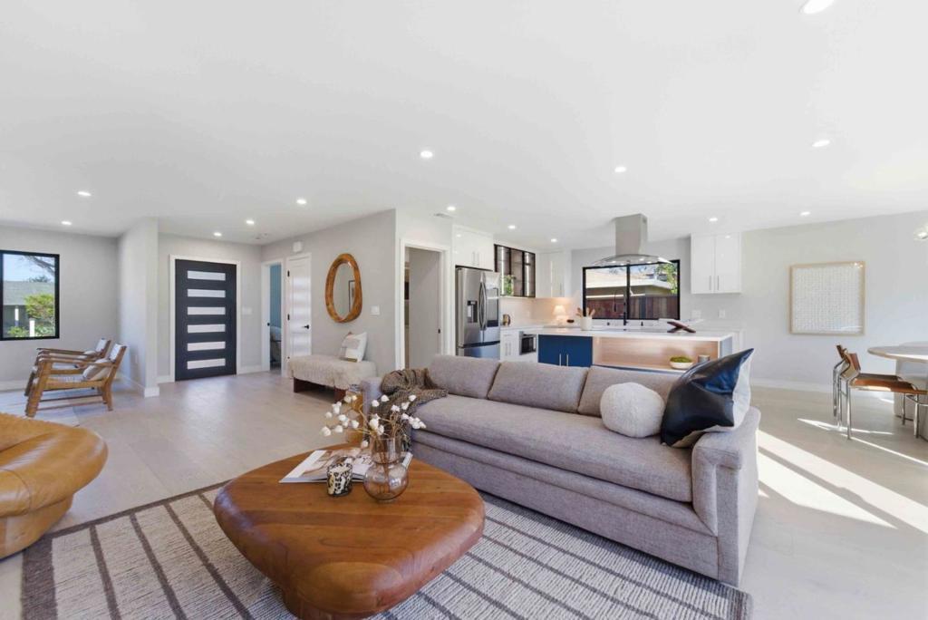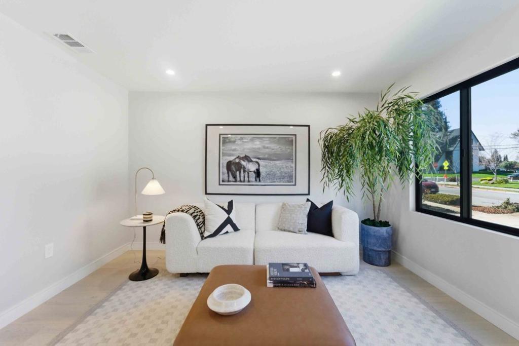 A Signature Luxury Renovation by Grand Castle Properties. Extensively rebuilt 4BD/3BA residence offering 2,100 sq ft of modern living space. Nearly the entire home has been reconstructed with only the original foundation and garage structure remaining, delivering the quality and feel of new construction with modern design and high-end finishes throughout. Bright open-concept floor plan features spacious living, family and dining areas filled with natural light. The designer kitchen includes custom cabinetry, premium appliances, a large center island, and a fully equipped butler's pantry providing additional prep and storage space. The primary suite features a spa-inspired bathroom and an oversized walk-in closet. All bathrooms are newly designed with contemporary fixtures and finishes. Additional highlights include an oversized indoor laundry room, new cabinetry, flooring, lighting, doors, trim, and upgraded systems throughout. Private backyard offers space for outdoor dining and relaxation. Convenient Silicon Valley location with easy access to major tech campuses, shopping, dining, and commuter routes.
