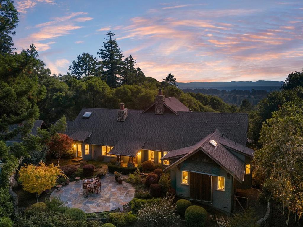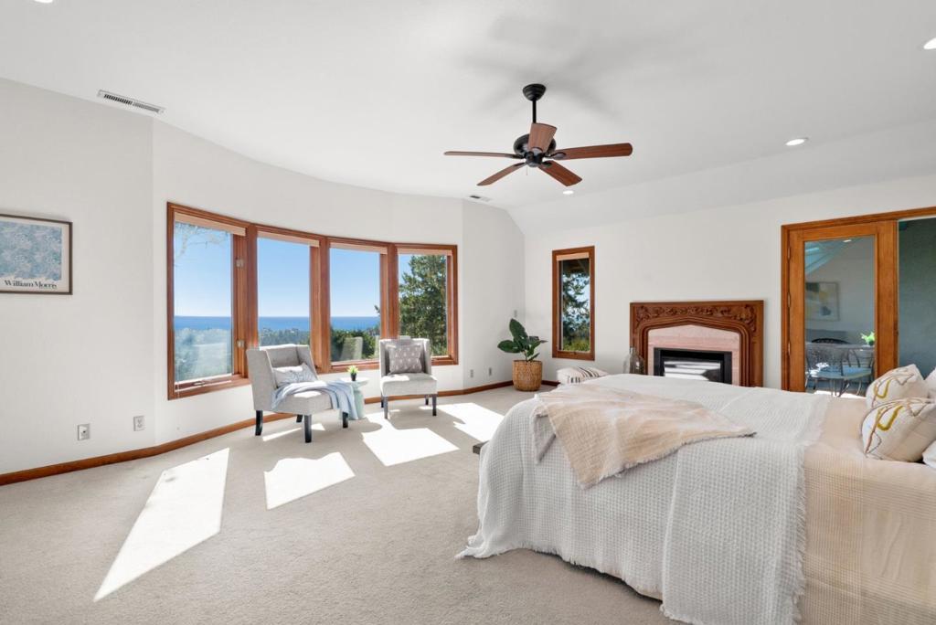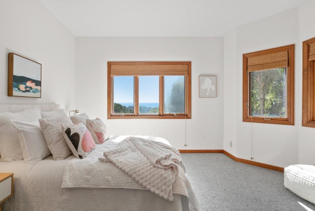 Stunning ocean views, privacy and a connection to nature define this exceptional property. Thacher & Thompson Architects designed this custom home to harmonize with its surroundings, showcasing breathtaking ocean views from nearly every room. The private road, gated entry and surrounding oak and redwood trees create a private, serene retreat with almost daily sightings of wildlife. Despite feeling so far away, the home is only 3 minutes from Aptos Village and 6 minutes from the beach, offering easy access to restaurants, shopping and the coast. The home itself feels warm and inviting, though refined at the same time. The beautifully designed courtyard and dramatic 2 story entry set the tone for the home. Spacious rooms, high quality materials and expansive windows are found throughout. The thoughtfully designed floorplan features a library, family room, two decks and two ensuite bedrooms on the main level. Upstairs the almost 900 sf primary suite boasts a private sunroom, generous bathroom with 2 walk-in closets, an oversized tub and shower, all highlighting the ocean view. Additional amenities include a finished 3 car garage, plenty of space for guest parking and a generator. This home has been treasured by two families since it was built and is ready to become your sanctuary