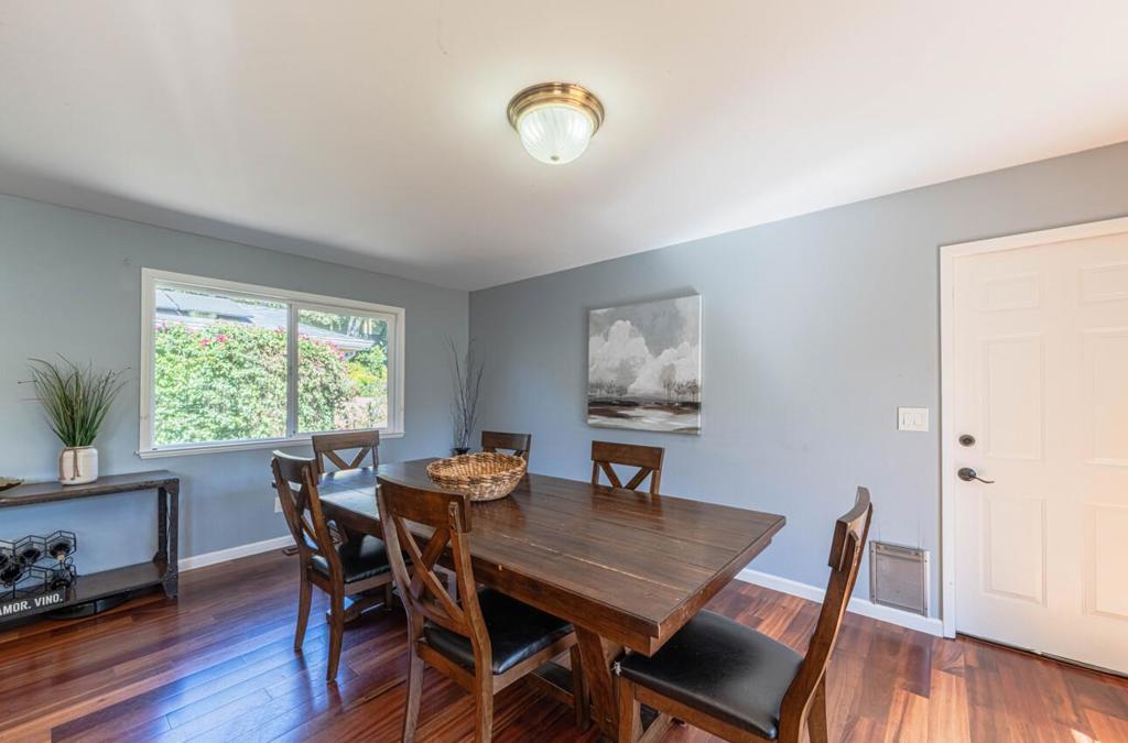 Welcome to this inviting Oak Hills Haven situated on over 1/3 acre of tree-lined seclusion! This tastefully updated & remodeled 4-bedroom, 2-bathroom home exudes charm & comfort throughout. Recent upgrades include new Pex plumbing with whole house filter; soft water system; new furnace & ductwork plus an air conditioner; a stunning primary bedroom remodel with a luxurious spa-like bathroom; and a new roof with solar. The kitchen is a culinary dream, featuring granite countertops, gas cooktop, double ovens, newer French door refrigerator/freezer, large pantry cupboard & a garden window looking out onto the expansive back yard. The flexible floor plan boasts both a family room & dining room and there is also a large, separate step-down living room featuring a modern stone fireplace with hand carved wood mantel. 3 sets of sliding French doors open up to the spacious back patio, artificial-turf playground, hot-tub and garden. When the world is fraught with stress and uncertainty it's a joy to be able to come home to peace & tranquility, birds singing in trees, sun shining through windows and a steaming hot-tub waiting to help you unwind at the end of the day. This home is a private haven with the convenience of being just minutes to shopping, schools, major highways & the beach.