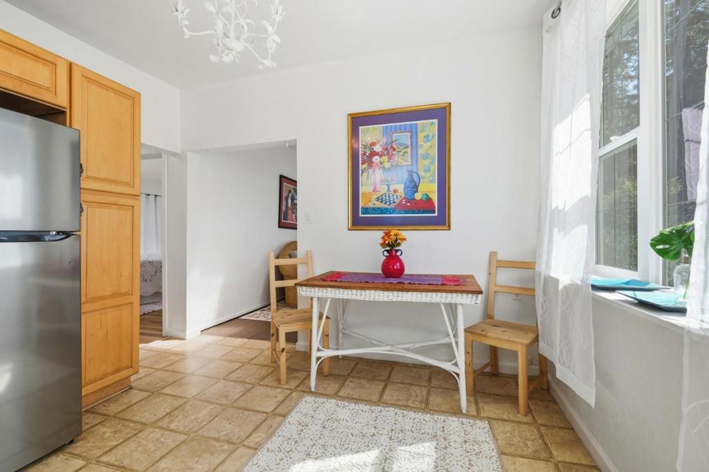 This absolutely adorable single-level, handicap-accessible country cottage in sunny Mount Hermon is full of charm and character. Surrounded by a classic white picket fence, this 2-bedroom, 2-bath gem features an inviting open layout with freshly painted, spacious rooms, newer windows, and skylights that fill the home with natural light. Thoughtful upgrades throughout enhance its warmth and comfort. The primary bedroom includes a private deckperfect for relaxing and enjoying the serene surroundings. Sip your morning coffee on the welcoming front porch while listening to the gentle sounds of birds and hawks overhead. Located just a short stroll from the famous suspension bridge, scenic trails, and all that Mount Hermon has to offer, this home is also ideally situated near Highway 17 and Highway 1, providing quick access to downtown Scotts Valley, Santa Cruz, and beautiful local beaches.