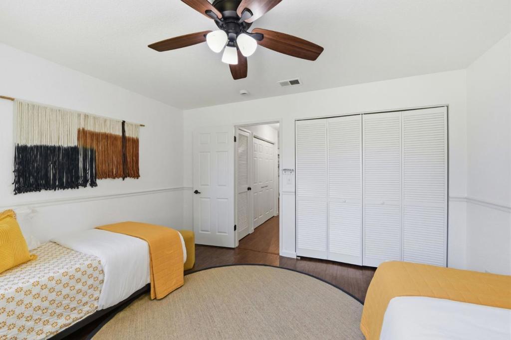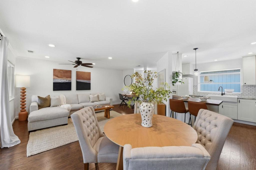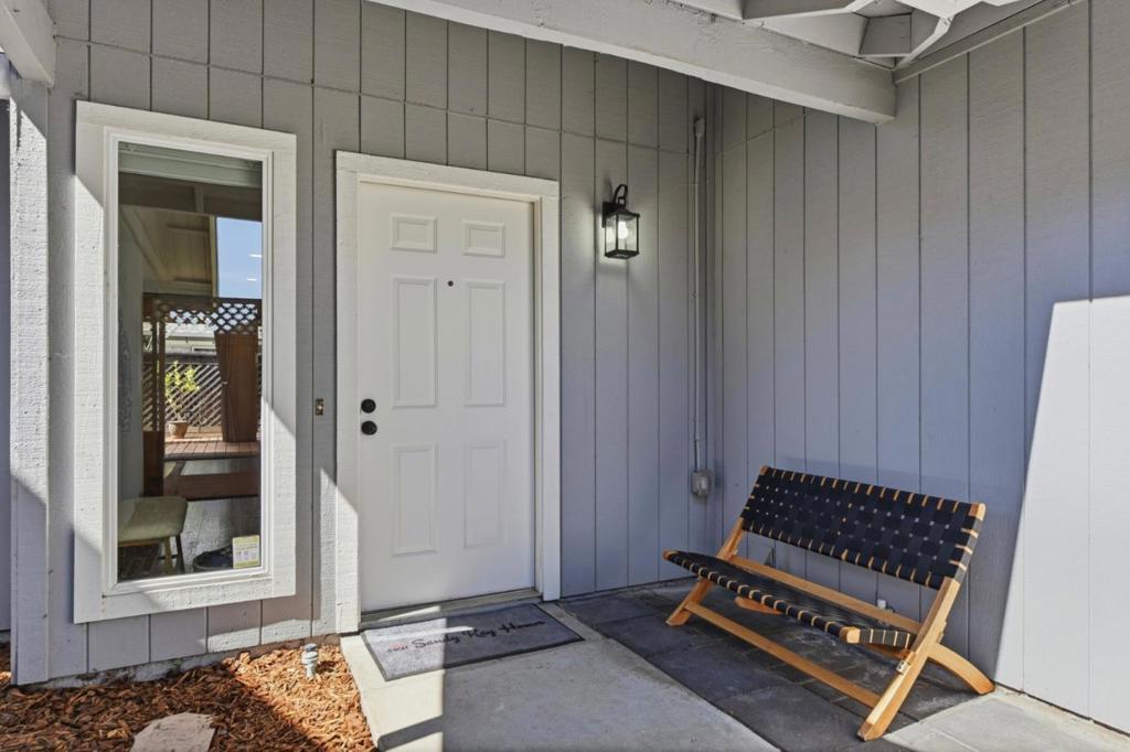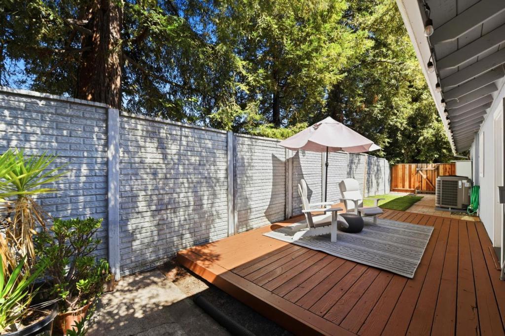 Rare single level end-unit residence that lives like a private single-family home, featuring only one shared wall at the oversized two-car garage and three separate yard spaces that create exceptional privacy and indoor/outdoor flexibility. With no interior steps and an expansive layout, the home feels open, refined, and filled with natural light.Thoughtfully renovated and move in ready, the interior showcases dual-pane windows, a newer high efficiency electric heat pump w AC. Shimmering glasss in the updated bathrooms and new light fixtures throughout the home. Master has a walk in closet and large shower. The bright open-concept kitchen offers granite counters and wood breakfast bar w newer appliances, wine refrigerator and seamless flow into the spacious living and dining areas, ideal for both everyday living and entertaining. Washer and dryer in unit. The desirable end-unit location provides added privacy within a well maintained community featuring a pool and landscaped grounds, all with convenient access to shopping, dining, and major commuter routes. A rare opportunity to enjoy low maintenance living without compromising comfort, space, or style.