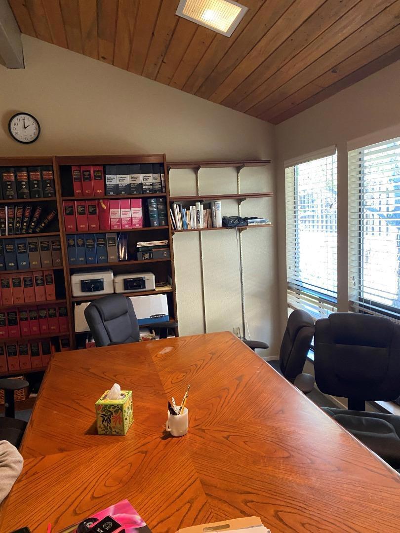 Professional stand-alone office building on Scotts Valley Drive. Large central shared space perfect for administrative staff or co-work set up with four adjacent private offices and large conference room. Deck access from each office. Entrance with seated waiting/reception area. Two private bathrooms, one with shower, and kitchen. New HVAC system and private driveway and parking w/ ADA accessibility. Will consider sale of office furniture with the property.