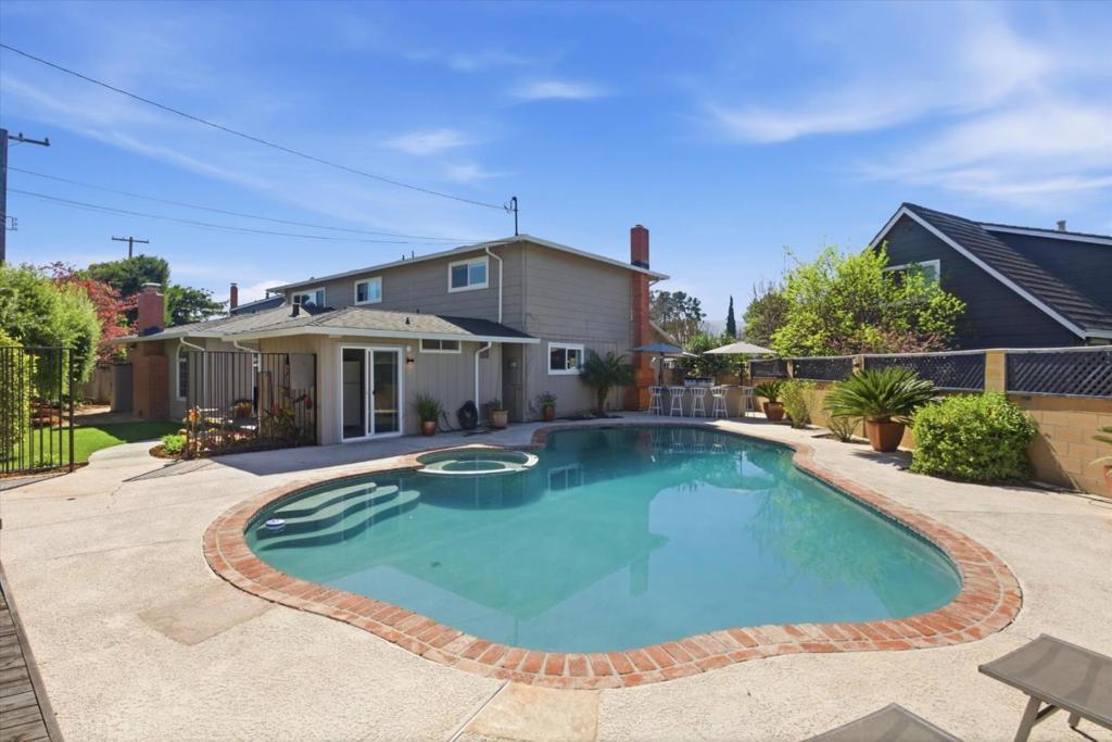 Nestled on a 10,138 SF pie-shaped lot, this beautifully updated 6 BR/3.5 BA Doerr Park home offers a blend of modern elegance, comfort, style & functionality. The expansive gourmet kitchen dazzles w/natural stone quartzite countertops, custom cabinetry, stainless appliances & a center island. The kitchen is perfectly positioned between the dining room & spacious family room - creating the ideal space for formal & informal dining & entertaining. Relax at the end of the day or gather w/friends & family around the cozy gas fireplace in the oversized family room. The upstairs bathrooms have been tastefully updated w/contemporary fixtures, materials & finishes. There are 5 bedrooms upstairs including the primary suite & 1 bedroom downstairs - perfect for extended family, an au-pair, office, playroom or gym. The private backyard is truly special & one of a kind boasting a comfortable deck, verdant lawn, raised garden beds & an inviting pool. The gated pool area is its own separate oasis featuring an integrated spa, raised deck under a gazebo, barbeque island w/seating, relaxing fountain & pool house that includes a full bath, refrigerator & space for food prep & storage. With its prime location, there's easy access to freeways, shopping, restaurants, Doerr Park & great schools.