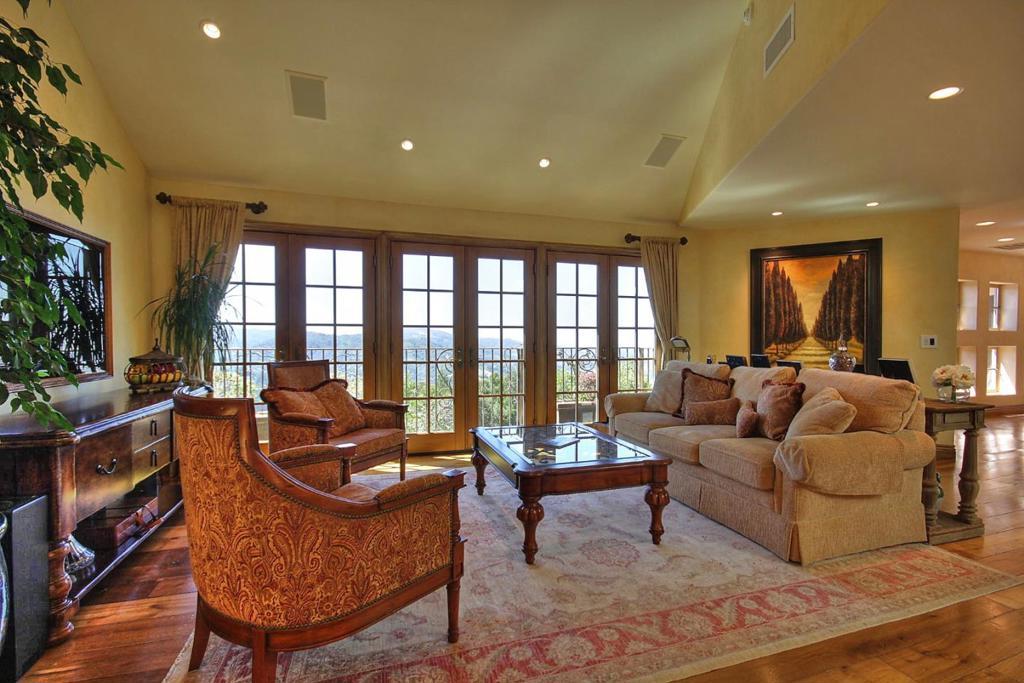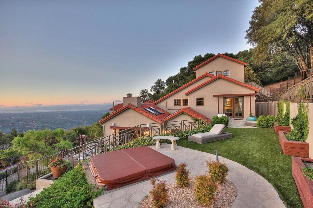 Sits on a picturesque 5.07 acres in Saratoga Hills with spellbinding Silicon Valley & San Francisco Bay views. Soak in the sights & relax in your oversized spa, work out on the sports court or enjoy a round on the putting green. Cabernet Vineyards & 2 mi. to Downtown Saratoga, 15 minutes to Levi stadium & more! Grand foyer and living room boast panoramic views through large picture windows, vaulted ceilings & Limestone fireplace. Gourmet kitchen is fantastic! Several preparation areas, gourmet appliances, pantry, granite slab countertops & large center island w/sink & breakfast bar.A spacious family room w/vaulted ceilings, surround sound, and three sets of French doors leading to a Juliet Balcony. Formal dining room with wood beamed ceilings & French Doors leading to a private terrace. Beautiful flagstone terraces overlook the oak-studded hills and city views. Perfect for entertaining or quiet enjoyment, outdoor amenities are perfect for summer days or relaxing sunsets.