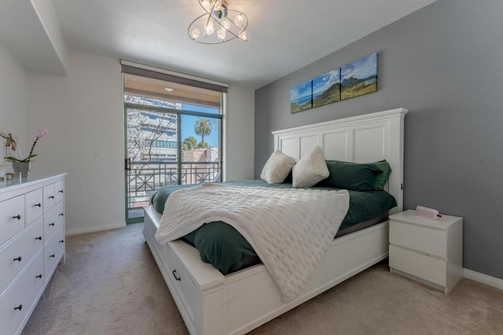 Enjoy the convenience of downtown living in this well-located 2-bedroom condo in the sought-after Paseo Plaza community. This comfortable unit offers a functional layout with an open living and dining area, ideal for everyday living, working from home, or hosting guests. One of the bedrooms features a built-in Murphy bed, allowing the space to easily function as a guest room, home office, or flexible workspace. Residents of Paseo Plaza enjoy resort-style amenities, including a pool, spa, fitness center, and secure building access, offering a convenient and low-maintenance urban lifestyle. Located in the heart of downtown San Jose, the condo is just moments from San Jose State University, San Pedro Square Market, the SAP Center, restaurants, coffee shops, entertainment, and public transit.