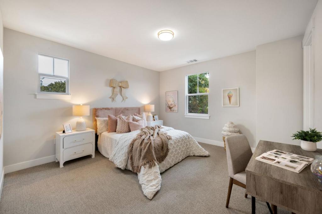 Located within Carlton Estates, a brand-new luxury home community featuring 6 homes on the border of San Jose and Los Gatos, this newly constructed residence offers a thoughtfully designed three-bedroom layout ideal for modern living. Two well-sized secondary bedrooms provide flexibility for guests, family, or a dedicated home office, while the private primary suite serves as a comfortable retreat with a well-appointed en-suite bath. The open-concept main level is filled with natural light and enhanced by soaring ceilings that create a bright, airy atmosphere throughout. The designer kitchen features premium Bertazzoni appliances, sleek cabinetry, and modern finishes, flowing seamlessly into the living and dining areas, perfect for both everyday living and entertaining. This prime location offers walking distance to Carlton Elementary and quick access to Nob Hill Foods, Vasona Lake, Downtown Los Gatos, and major Silicon Valley employers, including Netflix. A rare opportunity to own new construction in one of San Jose's most desirable new communities. **Photos and tours show 4909 Vivi Place - please show that one before you show 4910 - floor plans are nearly identical - 4909 is NOT staged** **Some photos have digitally altered elements for marketing purposes**