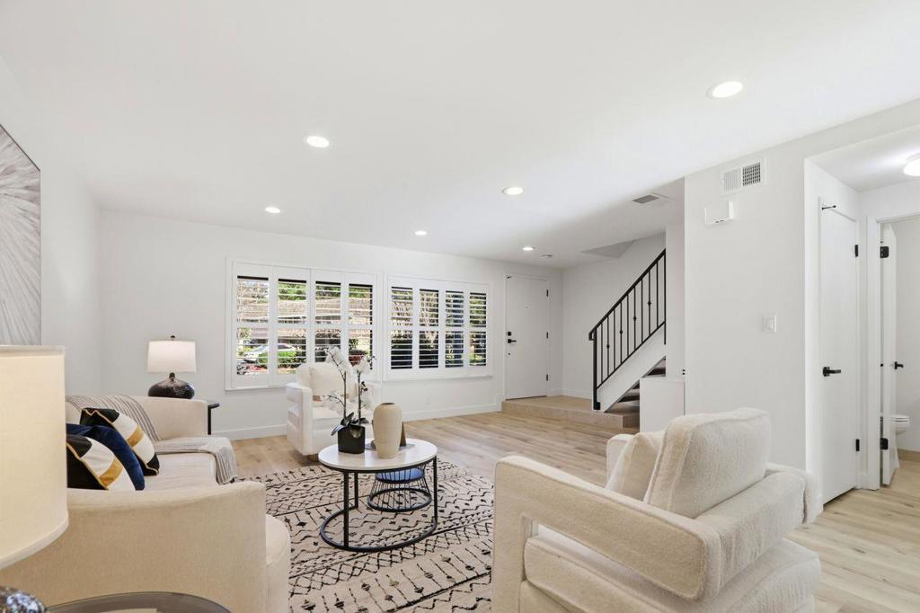 A sunny, spacious place to call home. This beautifully remodeled 3-bedroom, 2.5-bath PUD/townhome sits in a peaceful Blossom Valley cul-de-sac. The brandnew kitchen features clean modern lines, quartz countertops, tile backsplash, and a large breakfast island offering extra seating and storage. Fresh paint, new tile, carpet, luxury vinyl flooring, recessed lighting, updated plumbing fixtures, plantation shutters, dishwasher and microwave create a stylish, move-in ready interior. All bedrooms are generously sized with new mirrored closet doors. Bathrooms include custom tile showers with sleek glass doors, new vanities, fixtures, mirrors, and lighting. A convenient upstairs laundry adds ease to daily living. The spacious patio between the kitchen and private two car garage is perfect for creating your own garden oasis or perfect for the pet owner! Enjoy nearby amenities just just around the corner including a lap pool, kiddie pool, cabana, game room, and clubhouse with large kitchen. Super location near front of the complex in convenient cul de sac. Close to major freeways, VTA light rail, Oakridge Mall, restaurants, and shopping. HOA covers water, sewer, trash, and roof maintenance. This is a fabulous place to call home!