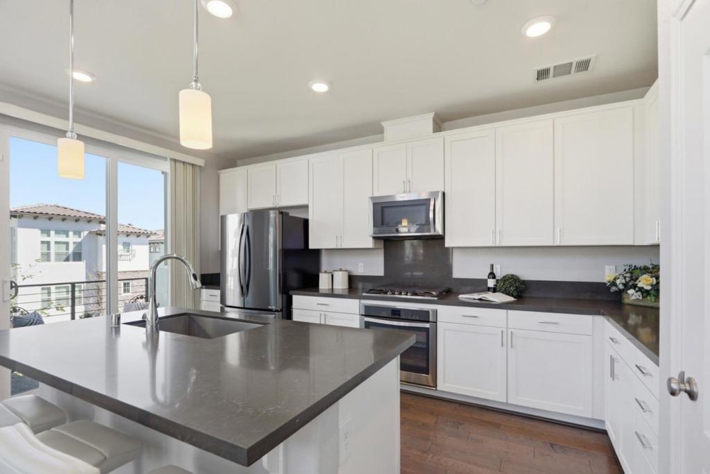Prime Hilltop Location in Communication Hills with Stunning Views. Perched at a scenic lookout point, beautifully designed upper-level home, modern living, privacy & comfort. Bright, open-concept layout, abundant natural light, multiple double-pane windows. 2 bedr/2 bath + versatile loft (ideal as 3rd bedr/office /gym). Approx.1905sf, dramatic double-height ceilings(20+ft), built 2017. Attached 2-car garage/extra space, EV charger. Fresh interior paint, new carpet throughout. Hardwood floor in main living areas & hallway. Spacious great room/soaring ceilings. Bonus loft perfect for work-from-home/gym/game. Upgraded kitchen featuring white cabinetry, roll-out drawers, sleek countertops, stainless steel appliances, gas cooktop, large island, bar seating & pantry. 3 private balconies off the kitchen, dining & loft. Indoor laundry, XL washer & gas dryer. Smart thermostat A/C, water softener & tankless water heater. Contemporary bathrooms in primary suite, dual-sink vanity, walk-in closet. Just steps to William Manly Park, playground & scenic trails. HOA included Garbage, Exterior, Roof. Just Minutes to Downtown San Jose & Willow Glen. Easy commute to major Silicon Valley tech campuses. Easy access to Hwy 101, 85, 87, 280, VTA & Caltrain. Close to shops, dining & everyday amenities