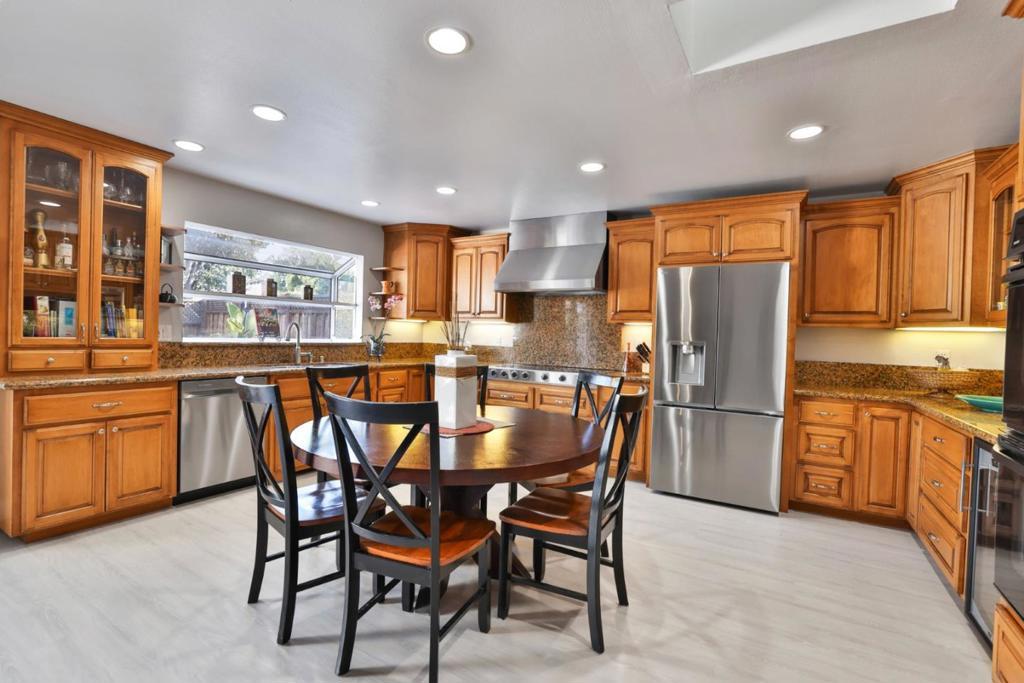 Beautifully updated 3-bedroom, 2-bathroom home offering a bright, open layout and modern finishes throughout. Thoughtfully upgraded, this home features a chef-inspired kitchen with maple cabinetry, stunning Venetian Gold slab granite countertops, a premium Windcrest 6-burner cooktop, wine cooler, and skylight that fills the space with natural light. Additional upgrades include remodeled bathrooms, new flooring, fresh interior paint, and recessed lighting, creating a clean and contemporary feel throughout the home. Step outside to a spacious backyard with a pool, perfect for entertaining guests or enjoying your own private retreat. This move-in ready home combines comfort, style, and functionality a true gem you wont want to miss!