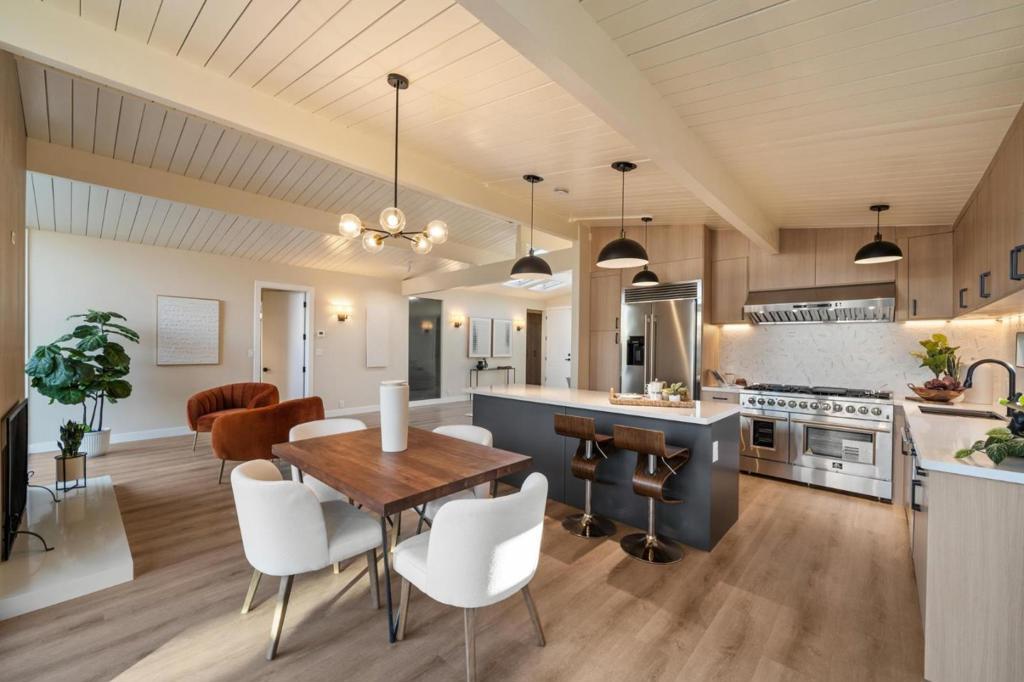 Beautifully remodeled Eichler home nestled in the desirable part of Foster City. This 4-bedroom, 2 bathrooms residence, with a separate office has been tastefully remodeled to combine timeless Eichler design with high-end modern upgrades. Spanning 1,871 square feet, the spacious and functional layout offers comfortable living spaces. The large family room, filled with natural light from skylights, seamlessly flows into the living room with a centerpiece wood-burning fireplace, creating an inviting and bright atmosphere. At the heart of the home is the chefs kitchen, featuring a 48" dual fuel range with two ovens, quartz countertops, a built-in refrigerator, and ample space for culinary creations. Energy-efficient features, with designer appliances, enhance sustainability without compromising style. Ample storage is provided through walk-in closets and built-ins throughout. The private backyard w/low-maintenance landscaping, while the two side yards offer endless possibilities for gardening, putting green or a dog run. The home offers a 1 car garage and a carport layout. Situated on a Cul-de-Sac with access to Turnstone Park and just a few blocks from Bay Trail. This is a rare opportunity to own a beautifully reimagined Eichler, perfect for modern living in a superb location.