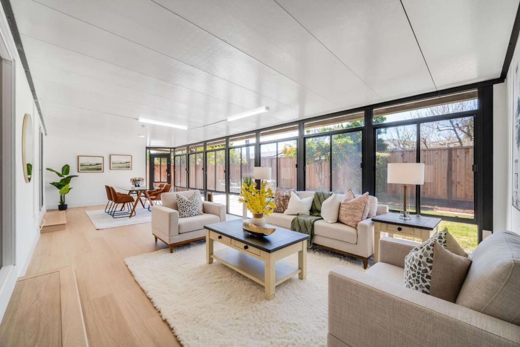 Welcome to 3609 Cefalu Dr, a beautifully renovated single-level home in a sought-after San Jose neighborhood with top-rated schools. This light-filled residence offers 5 bedrooms and 3 bathrooms across approximately 1,767 sq ft on a 6,936 sq ft lot. The open floor plan features dual primary suites, including one with a private entrance, ideal for flexible living. An enclosed sunroom adds bonus space for a family room or lounge. The upgraded kitchen includes quartz countertops, soft-close cabinetry, and stainless steel appliances, complemented by three updated bathrooms. Improvements include a newer roof, tankless water heater, HVAC, updated electrical panel, dual-pane windows, premium SPC flooring, recessed lighting, fresh interior and exterior paint, and new fencing. Leased solar panels add efficiency. The private backyard features new landscaping, patio, and deck, perfect for relaxing or entertaining. Conveniently located near Hwy 17 and 85, minutes to Downtown Campbell, Los Gatos, and Saratoga, with easy access to shopping, dining, and parks. A rare opportunity to own a move-in ready home with flexible living space in one of San Joses most desirable neighborhoods.