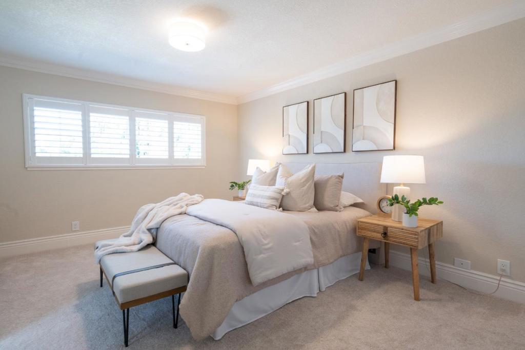 On a beautiful tree-lined street, in one of the neighborhoods most desirable areas, this private 4-bedroom, 2.5-bathroom home combines great style with a highly sought-after floorplan. Featuring updated bathrooms, new carpet, laminate floors, fresh paint, walk-in closets, a large partially finished attic and an exterior shed, storage and functionality are abundant. Indoor laundry adds convenience, while the back patio, front and backyard lawn areas, and a backyard garden with lemon, tangerine, and pomegranate trees provide the perfect family-friendly retreat. Plenty of parking space completes the picture of a home designed for modern living. Move-in ready with many updates recently, 2-zone Air-Conditioning, window plantation shutters throughout, new carpet, ceiling fans in the bedrooms, new shower glass in primary and guest bathroom, closet rack/organizer in primary bedroom, new water heater, new exterior lights, new French drain, added additional plumbing for water softner, and many more to list. A new Tesla charging station a few blocks away. Close to every day convenience. Easy access to freeways 85, 87, light-rail station, Martial Cottle Park and Meadows Park. This property is a must see!