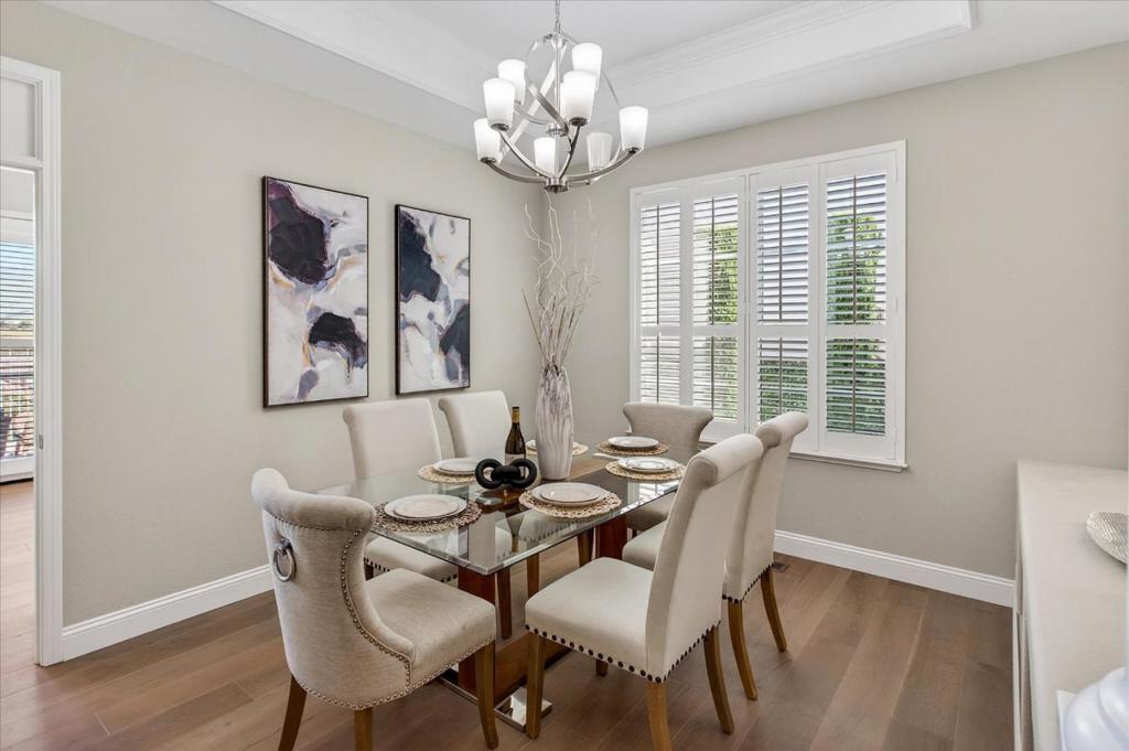 Nestled in the prestigious Silver Creek Valley Country Club, this 4-bedroom, 3.5-bath home offers 3,599 sq. ft. of timeless elegance and modern comfort. Step inside to soaring 20-foot ceilings, sunlit windows, and a dramatic grand staircase. The recently updated chefs kitchen features quartz and granite counters, a spacious island with a vegetable sink, top-tier appliances, and ample cabinetry. The cozy family room with a fireplace and breakfast nook flows seamlessly to a patio with sweeping views perfect for entertaining or relaxing. The first-floor private suite is ideal for guests or multigenerational living. Upstairs, the primary suite showcases breathtaking Mt. Hamilton views, a spa-like bath with a soaking tub, glass-enclosed shower, dual vanities, and a walk-in closet. Two additional bedrooms and a bonus room with balcony access complete the upper level. The low-maintenance backyard provides a tranquil retreat with stunning vistas. Conveniently located near the communities front gate and amenities, This home is also within the highly-rated Evergreen School District, celebrated for its exceptional academics and thriving community. Discover luxury living in the heart of Silicon Valley!