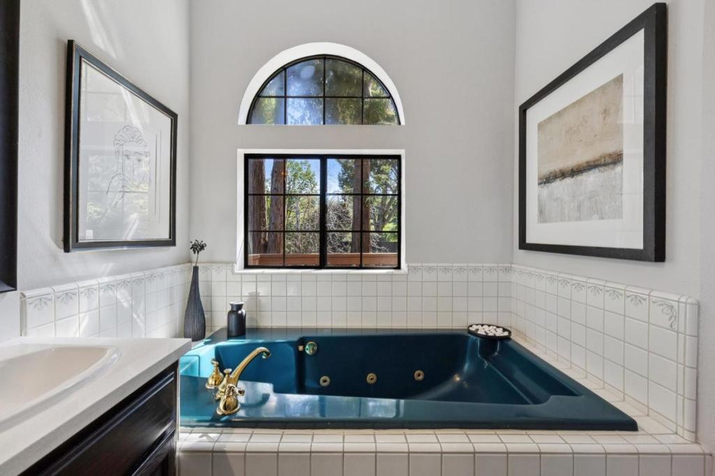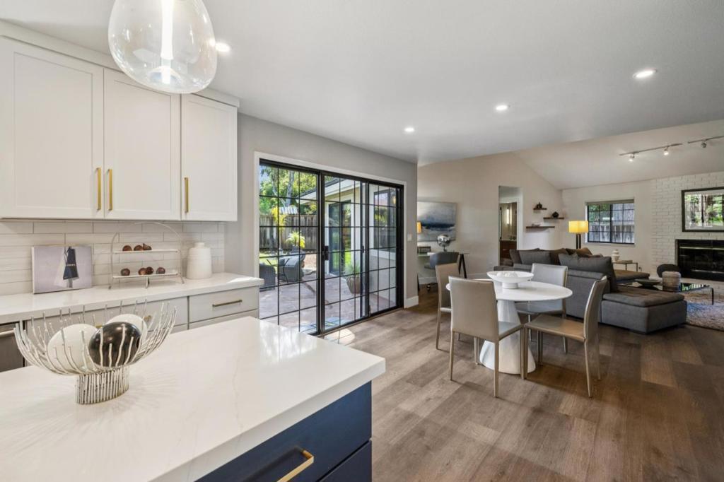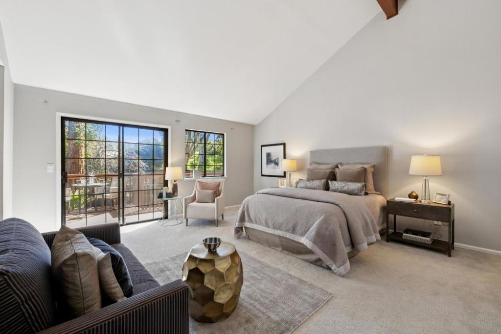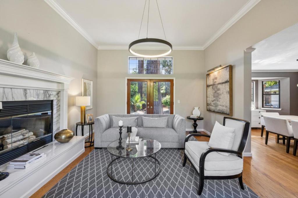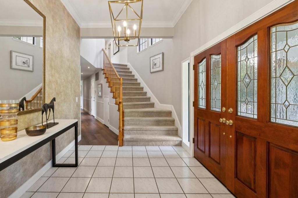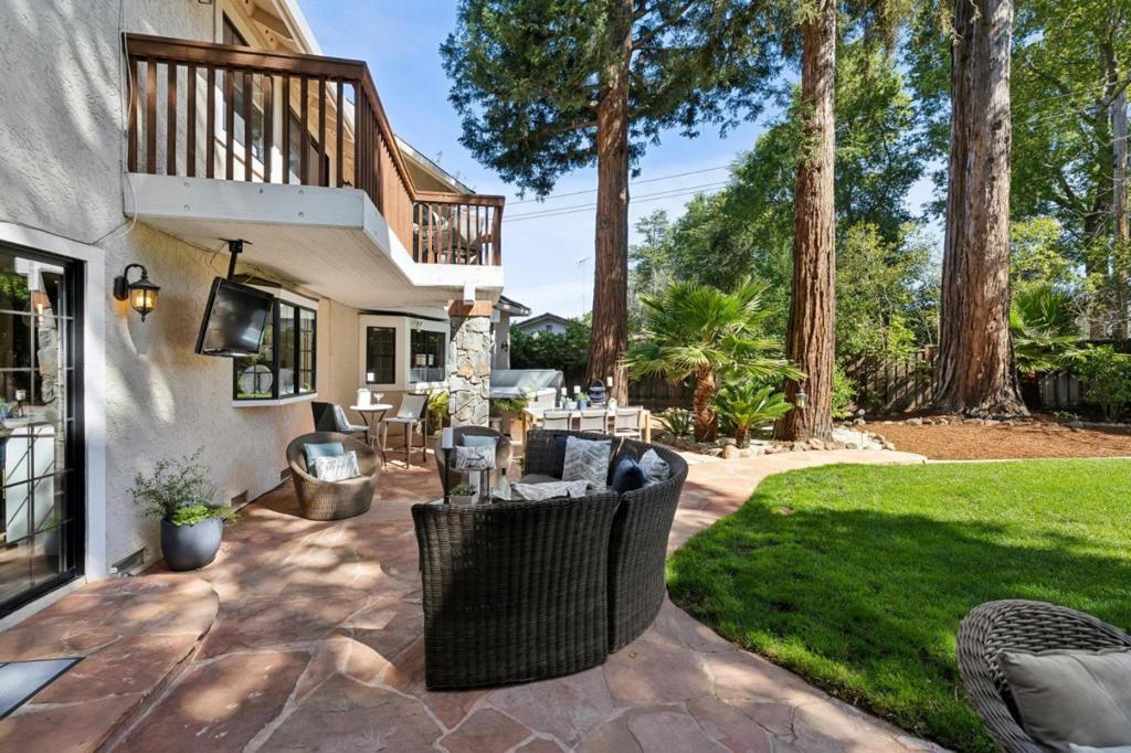 Incredibly spacious with many stunning updates, this exceptional two-story, 4-bedroom, 3.5-bath home offers relaxed California indoor/outdoor living in the sought-after Highlands area with top-rated schools. Set back from the street behind a deep front lawn, the home is surrounded by lush landscaping and mature trees. The grandness of this home is immediately evident as you walk into the beautiful lobby. Inside, the flowing floor plan is arranged for both graceful entertaining and everyday living beginning with the elegant living room and formal dining room with butlers pantry. The designer, quartz-appointed kitchen with center island opens to an expansive family room with fireplace and sliding glass doors to the backyard. The highly flexible accommodations begin with a main-level bedroom and adjacent full bath - ideal for a parent or as an office, while three additional bedrooms, including the grand primary suite with balcony, are privately located upstairs. The perfect place to unwind, the large and serene backyard offers an entertainers patio, lush level lawn, a hot tub, and a variety of mature trees. All this is just steps from Rancho San Antonio County Park, and minutes to Cupertino schools, plus shopping and dining in Rancho Shopping Center and downtown Los Altos