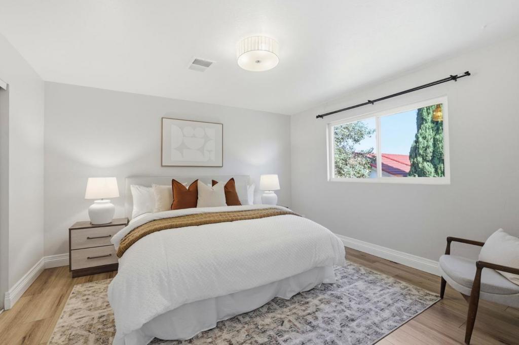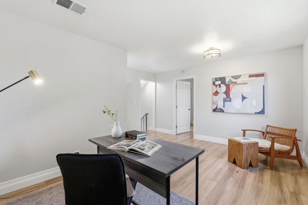 Bright, move-in ready home in the convenient Berryessa neighborhood of North San Jose! This well-maintained residence features a sun-filled living room with large double-pane windows, a sleek electric fireplace, and stylish wood-look plank flooring throughout. The updated kitchen offers quartz countertops and stainless steel appliances, including a new stove and dishwasher, while the dining area opens to a private patio, perfect for outdoor entertaining. Upstairs, a spacious loft provides flexible living and can easily convert to a fourth bedroom. Enjoy beautifully landscaped front and backyard spaces with mature fruit trees, plus an owned Tesla solar system with two Powerwall batteries for energy efficiency and backup power. Ideally located just minutes from Costco, Ranch 99, and H Mart, with easy access to parks, shopping, dining, and major commute routes.