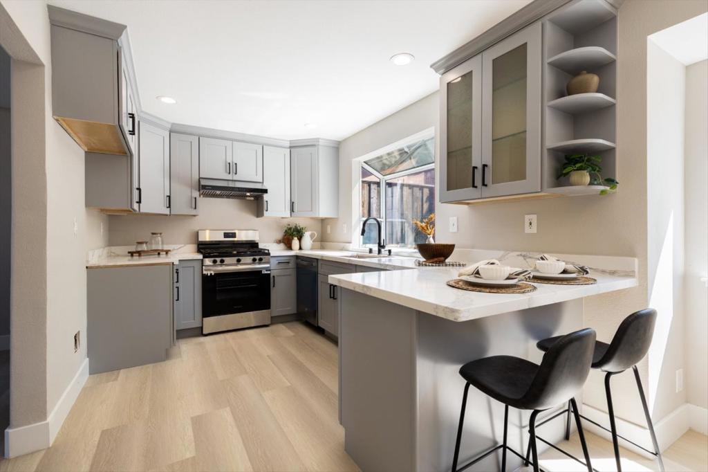 Gorgeous updated home in a desirable foothills neighborhood! This light-filled 4-bedroom, 2.5-bath residence features an ideal floor plan with high and vaulted ceilings, blending modern upgrades with comfortable everyday living. The home showcases a remodeled kitchen and bathrooms, new flooring, dual-pane windows, LED lighting, and central heating. The spacious primary suite offers a luxurious spa-like bath with an oversized soaking tub and separate shower. The updated kitchen is equipped with stainless steel appliances, gas range, quartz countertops, and new cabinetry. The inviting family room, formal dining area, and fireplace create a seamless flow for both relaxing and entertaining. Step outside to a beautifully landscaped, low-maintenance backyard featuring a concrete and brick patio and mature fruit treesperfect for outdoor gatherings. Fresh interior and exterior paint enhance the homes move-in ready appeal. Conveniently located near San Jose Country Club, Lake Cunningham Park, Eastridge Mall, shopping, dining, and scenic hiking trails. Easy access to Highways 680 & 101, Light Rail, and major Silicon Valley employers.