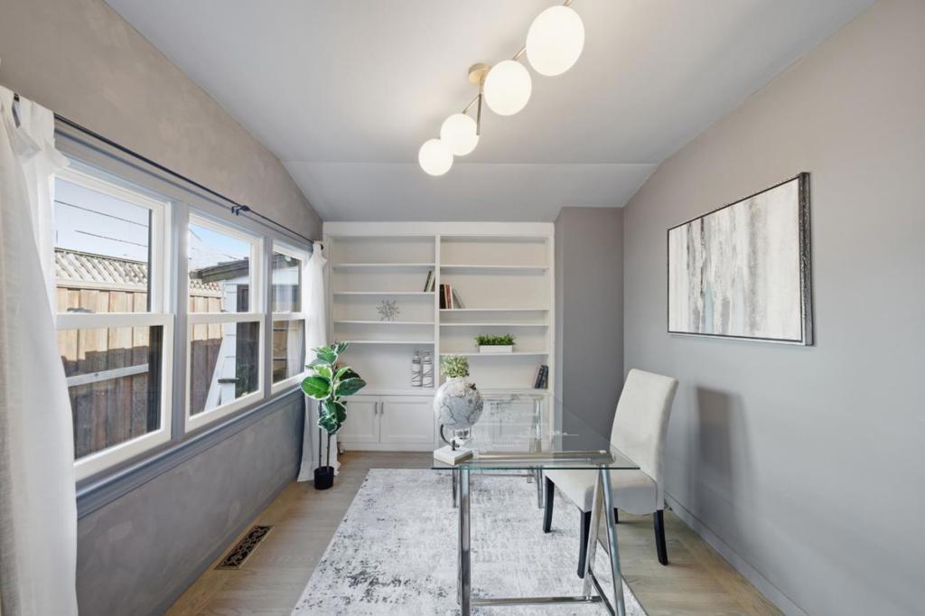 Tucked in the desirable Baywood neighborhood of San Mateo, this thoughtfully upgraded single-story home offers comfort, flexibility, and beautifully designed indoor-outdoor living. Situated on an expansive 8,190 sq ft lot, this property features 2 bedrooms and 1.5 baths. The converted garage offers a separate suite with a private bath and backyard access (buyer to verify), ideal for guests or extended living. Natural light fills the home's well-connected living spaces, with French doors opening from the living room to the patio and landscaped yard. The primary suite includes an office and sitting room with floor-to-ceiling windows, skylights, and Hunter Douglas automated window and skylight shades. The kitchen features high-end stainless steel appliances, generous counter space, and storage. Hard surface flooring runs throughout. The landscaped yard features roses, Japanese maple, wisteria, eco-friendly turf, custom hardscaping, a water feature, a fire pit, a plumbed-in BBQ, and soft lighting that transitions beautifully into the evening. Elegantly updated with approx $600K in improvements. Prime location near Central Park, downtown San Mateo's dining and shopping, and top-rated public and private schools. Centrally located near Caltrain, SamTrans, and Hwy 101, 280, and 92.