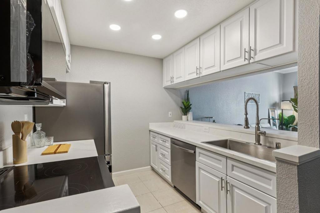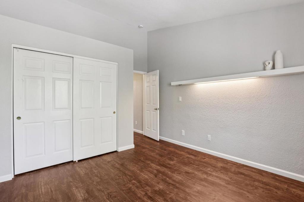 Ground level bedroom and full bathroom! This Incredibly remodeled townhome offers a rare blend of modern luxury and affordability. Boasting exceptional curb appeal and direct park access, this residence features three spacious bedrooms and three updated full bathrooms. New Hardwood floor throughout. The remodeled chefs kitchen is complete with sleek quartz countertops, and matching Samsung appliances. Relax in the open-concept living area featuring a large picture window that opens to a sunny patio, perfect for grilling or gardening. The versatile floor plan includes a sought-after downstairs bedroom and full bath, ideal for a home office or guest suite. Upstairs, the primary retreat impresses with vaulted ceilings, custom closet organizers, and built-in shelving. Modern upgrades abound, including new flooring, recessed lighting, central A/C, a tankless water heater, and convenient upstairs laundry. This prime location backs up to Kelley Park, while staying minutes away from Diridon Station, the SAP Center, SJSU, and Japantown. Complete with a private detached garage, this home offers the ultimate Silicon Valley lifestyle.
