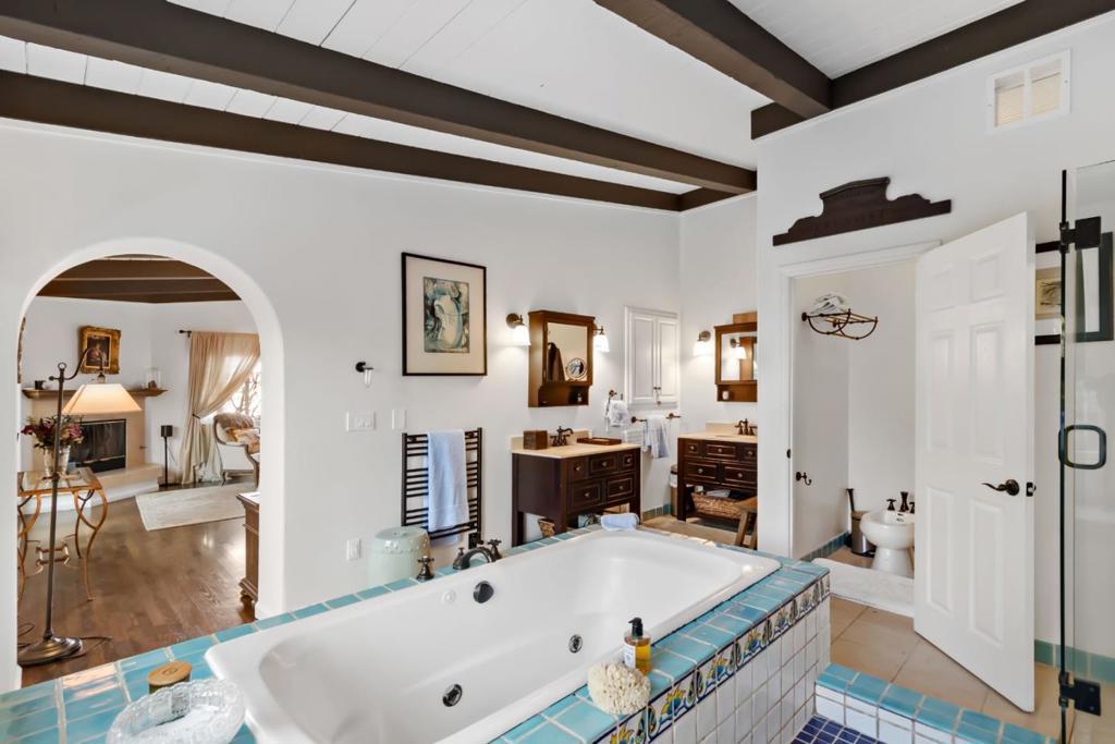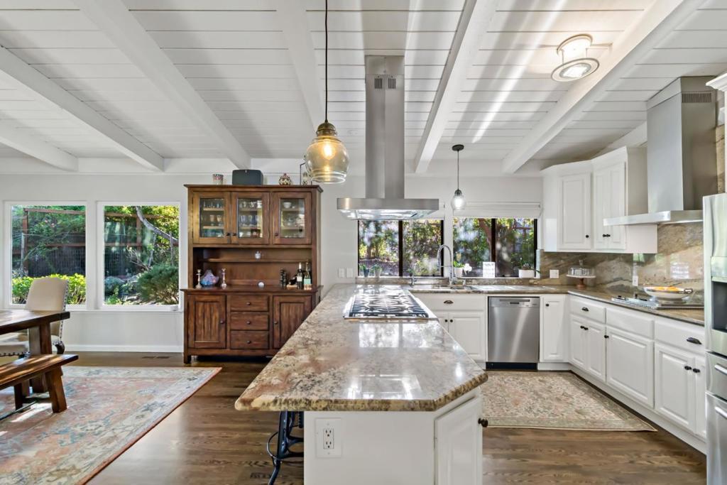 Set atop a coveted Emerald Hills street on a rare flat 12,183 sq ft lot, this beautifully staged 3650 residence offers an exceptional blend of comfort, style, and family-friendly living. The home features a spacious single-level layout with an expansive primary retreat, a dedicated office opening to the patio through elegant French doors, and a separate bedroom wing that creates ideal space for children, guests, or multigenerational living. The large primary suite includes a sitting area and private access to a balcony with hot tub. Bay views from the living room, living room patio, and upstairs reading nook add a special sense of openness and serenity. Designed for both everyday ease and memorable entertaining, the backyard is a true highlight, with new landscaping, a new patio, outdoor kitchen, sauna, swim-current pool, and mature fruit, rose, and herb gardens. Inside, the home feels warm, upscale, and inviting, with curated finishes, a polished sensibility and premium Miele appliances. Just moments from the best of the Peninsula. This is a rare opportunity to enjoy the Emerald Hills lifestyle at its best. Roy Cloud District. Minutes to 280, Elks & Edgewood Park hiking.