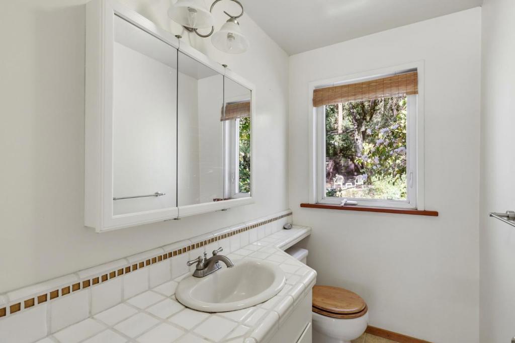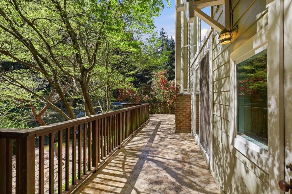 Nestled among redwoods on a beautifully landscaped .5 acre lot, this stunning 1,819 sq ft two story home offers a rare blend of privacy, craftsmanship, and convenience. Built entirely from old growth redwood, including the siding and 8' privacy fence, this home is as durable as it is distinctive. A fully fenced property makes it ideal for pets, complete with a outdoor living space looking over Bear Creek. Inside, the home is filled with natural light with floor to ceiling windows, skylights, and patio doors. The living room features a dramatic high vaulted ceiling and a fireplace, perfect for relaxing or entertaining. Rich hardwood flooring runs throughout. The updated kitchen showcases silestone countertops and custom cabinetry, blending modern functionality with rustic charm. A bonus room with wraparound windows offers the perfect space for a home office, or sunroom. Outdoors, the lush grounds feature an impressive variety of plants, Ca natives, fruit trees, bamboo, cacti, tropicals, and rare species creating a vibrant and ever changing landscape. A roundabout driveway and a covered carport complete the property. Enjoy a peaceful mountain lifestyle with an easy 20-minute commute to Los Gatos via scenic Bear Creek Road, avoiding most of hwy 17. Walking distance to downtown.