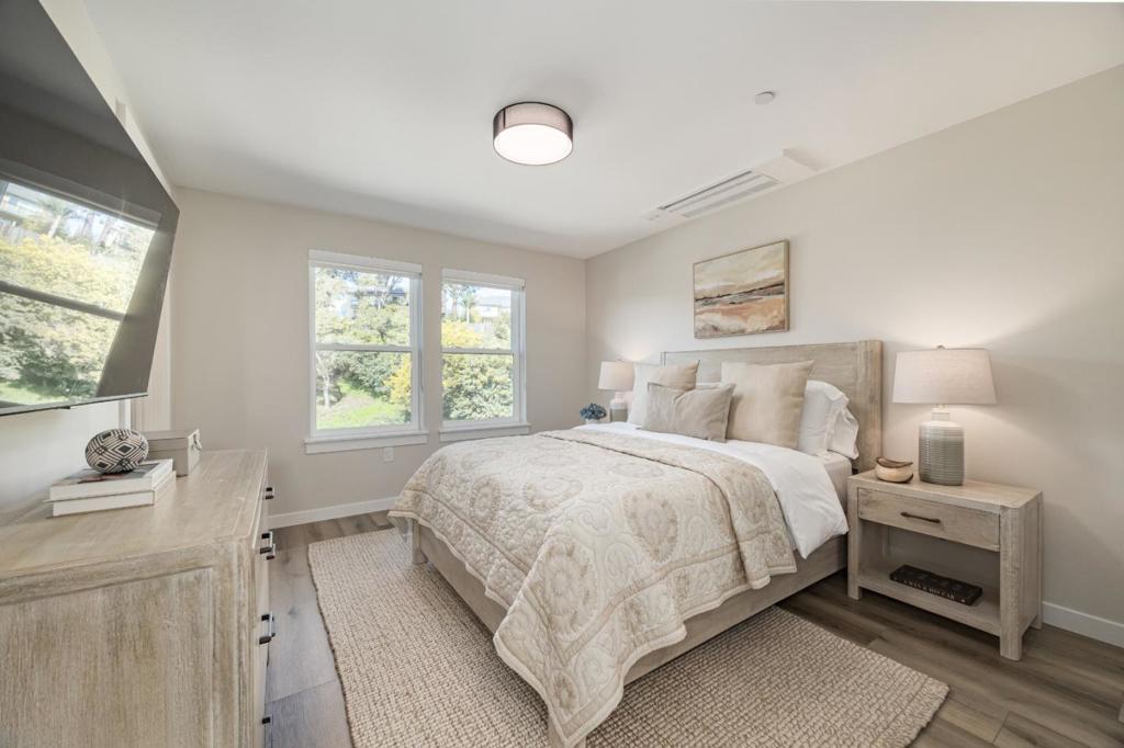 Inviting end unit located in Phase 2 of Aptos Village. Spring welcomes fresh energy to this lively, pedestrian-friendly community, with new owners and businesses continuing to shape the vibrant town center. Leave the car behind and head straight to Nisene Marks for a morning escape, or grab coffee nearby before starting your day. New Leaf Market is mere steps away from your front door. A sought-after destination along the Central Coast, Aptos provides easy access to beaches, scenic coastline, and renowned mountain biking trails beneath towering redwoods. New construction opportunities remain limited in Santa Cruz County, making this an exceptional offering. This desirable end-unit is one of only two 2-bedroom floorplans that feature an attached garage. Expansive windows and a private balcony off the main living area create a seamless indoor-outdoor feel, perfect for taking in distant views or enjoying the activity below. 2-bedroom floorplans in Aptos Village also include a versatile loft space, ideal for a home office or creative retreat. Additional floorplans are available, including 1-bedroom homes starting at $979,000. ***Some Photos are of Staged, Model Unit.***