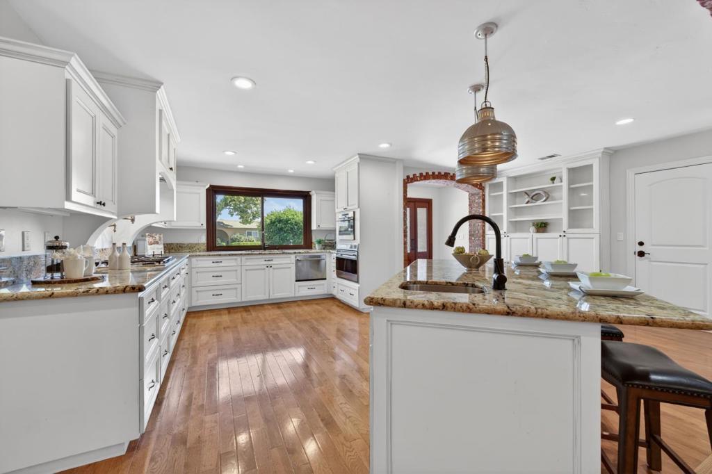Welcome to 216 Rodonovan Dr, a thoughtfully and thoroughly renovated single-story home in highly desirable Southwest Santa Clara. Designed for effortless living, this charming 3-bed, 3-bath residence offers 2,316SF of comfortable living space on a generous 8,000SF lot. It masterfully blends classic mid-century appeal with modern finishes and functionality. Step inside to an inviting open-concept layout featuring a spacious kitchen with a large central island perfect for casual dining and entertaining, with seamless flow between living areas, den, and main spaces. A cozy fireplace adds warmth, while the generous primary suite offers a decadent sanctuary for relaxation. Outside, enjoy the shaded patio and outdoor kitchen while the expansive lot provides tremendous potential for outdoor enjoyment. Imagine a lush backyard for play, gardening, or relaxing under the sun. Located on a quiet, tree-lined street in prime Silicon Valley, this home is minutes from major tech campuses, top-rated schools in the Cupertino and Fremont Union School Districts, shopping, dining, and parks. Whether you're seeking a move-in-ready family home with room to grow or a smart investment, 216 Rodonovan Drive delivers exceptional value and timeless appeal.