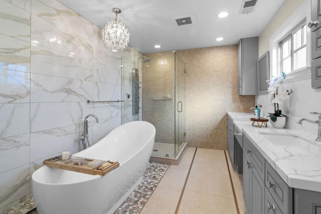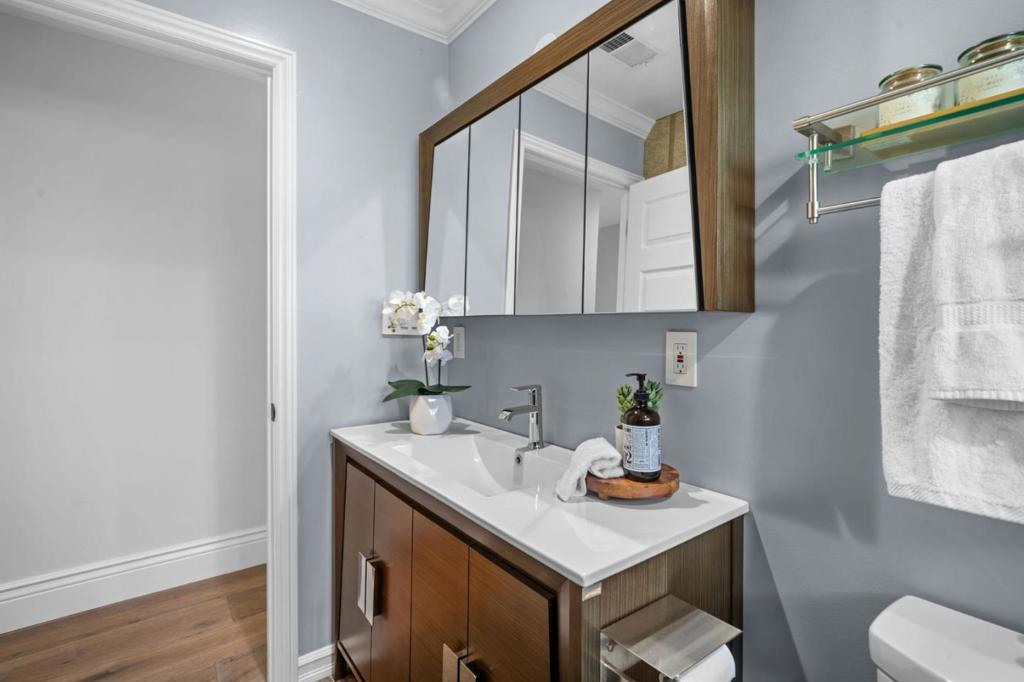 Thoughtfully renovated, this home underwent a complete permitted rebuild in 2017. Taken down to the studs and redesigned with quality craftsmanship and long term functionality in mind. Major upgrades include new framing, roofing, copper plumbing, insulation, drywall, and a 200amp electrical panel. Modern features include dual zone HVAC, a 70 gallon water heater, EV charger, energy efficient fixtures, and Title 24 compliant improvements. Inside, enjoy 8 foot ceilings, sound insulated first floor, European white oak flooring, custom crown molding, solid 5 panel doors, and a gas fireplace anchoring the living space. The kitchen offers custom hardwood cabinetry, granite countertops and backsplash, Samsung appliances, and an oversized Italian stone island ideal for everyday use and entertaining. Bathrooms feature Porcelanosa tile, quartz topped vanities, frameless glass, and a freestanding soaking tub. Exterior updates include Milgard windows, custom wood doors, 2025 exterior paint, professional landscaping with irrigation, lighting, drainage, and a paver driveway. Close to top rated schools, parks, trails, shopping, dining, and freeway access.