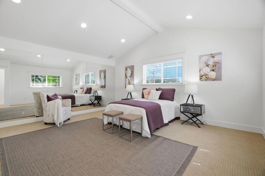 STYLISH EXPANSION ON PRIVATE CUL-DE-SAC | Masterfully updated and expanded by local builder Jon Wolverton for himself and his family, this home on a serene cul-de-sac in one of Sunnyvale's most beloved neighborhoods perfectly blends Craftsman character and modern sophistication, with open interiors adjacent to alluring gardens providing enchanting indoor-outdoor living at its finest. Two sets of gathering areas unfold from a skylit island kitchen, customized with cherry cabinetry, pull-out storage, and premium appliances, including a Thermador® professional-grade gas range with pot-filler. The expansive primary suite boasts a sky-lit bath, sitting room, walk-in closet, and private entry, while an office and flexible fourth bedroom/gym /flex space are tucked upstairs. Outdoor retreats are appointed with drip irrigation, fruit trees, and slate patios & footpaths with arbor and wisteria trellis. Highlights include an oversized two-car garage, surround sound, wide-plank hardwood floors, central cooling, and casement picture windows. Situated between Main Street Cupertino and Downtown Sunnyvale, this location is central to shopping, dining, entertainment, tech centers, and excellent Cupertino schools including West Valley Elementary, Cupertino Middle, and Homestead High.