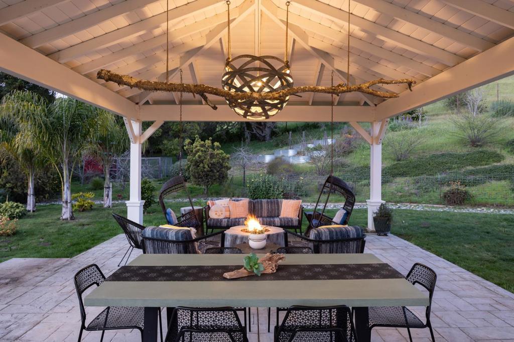 Honey Hill is a 21+ acre estate in the Aptos Hills that combines privacy, scale, and proximity, set among the rolling landscapes of Larkin Valley with panoramic views and minutes to Aptos Village and the coast. Built in 2014, the 3,796 sq ft home is designed for both daily living and entertaining, with wraparound brick porches, high ceilings, abundant natural light, and seamless indoor outdoor flow. The living room features a fireplace, built-ins, and direct backyard access. The chef's kitchen includes marble countertops, farmhouse sink, island, breakfast bar, walk-in pantry, and breakfast nook, with a dining room opening to the porch and a separate library for retreat. The main-level primary suite offers herringbone floors, walk-in closet, and a bath with clawfoot tub and double shower, while upstairs includes three bedrooms, full bath, family room, and office. Outdoor amenities include covered dining, firepit, outdoor kitchen, gardens, fruit trees, trails, and space for horses. Additional features include an oversized garage, mudroom, RV hookups, generator, and potential for a barn or ADU. A rare position where acreage and privacy meet coastal access, offering the feel of a secluded ranch just minutes from Aptos, Santa Cruz, and the broader Monterey Bay.