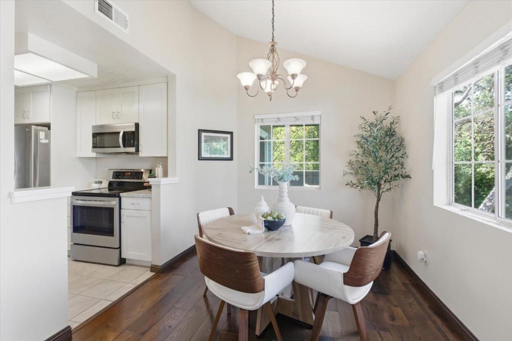Top-floor end-unit condo offering 1,257 sq ft of light-filled living with vaulted ceilings and beautiful meadow views. This spacious 3-bedroom, 2-bath home features an updated kitchen that opens to a welcoming living area, ideal for both everyday living and entertaining. Large windows enhance the airy feel, while two private decks provide perfect spaces to relax, dine, or enjoy the peaceful surroundings. The functional layout includes a comfortable primary suite, two additional bedrooms, and the convenience of an in-unit washer and dryer. Residents enjoy resort-style amenities including a pool, tennis courts, basketball court, volleyball court, and a stunning clubhouse. Ideally located with easy access to major highways, top-rated Pleasanton schools, and premier shopping, dining, and everyday conveniences. This home offers the perfect blend of comfort, style, and location.