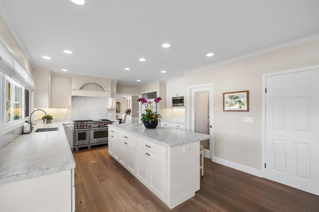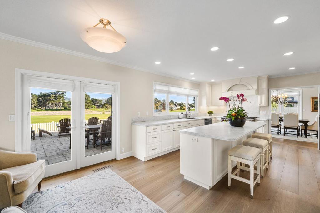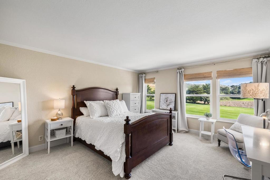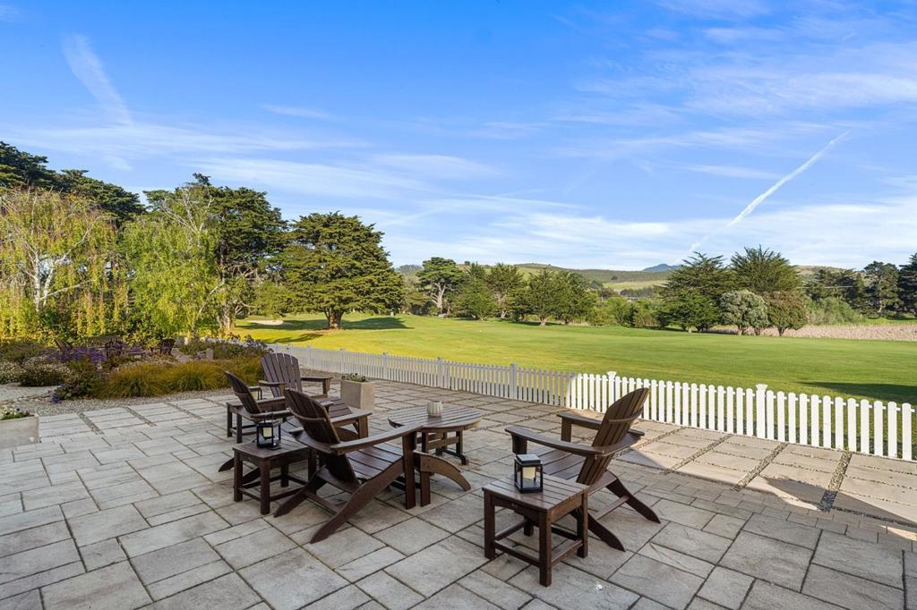 Poised on one of Ocean Colony's largest lots overlooking the 12th fairway, this Colonial masterpiece blends coastal elegance with timeless sophistication. Situated on a quiet cul-de-sac, the stately facade and grand circular drive create a stunning first impression. Sun-drenched interiors, with east/west exposure, feature new flooring, picture windows with hill and golf course views, and French doors for seamless indoor-outdoor flow. Chef's kitchen is an epicurean dream with marble counters, massive island, Wolf/Sub-Zero appliances, and walk-in pantry. For the host, a formal dining room boasts 300-bottle wine storage and wet bar, 3 large patios and built-in BBQ island. The home offers a grand living room plus two family rooms for ultimate flexibility. Upstairs, four en-suite bedrooms include a primary retreat with panoramic views, spa-inspired bath with steam shower, soaking tub & custom closet. "Secret" finished attic is a sky-lit sanctuary, studio or playroom. Future-ready with Tesla Powerwall and solar panels. A rare legacy property in Northern Californias premier coastal enclave.