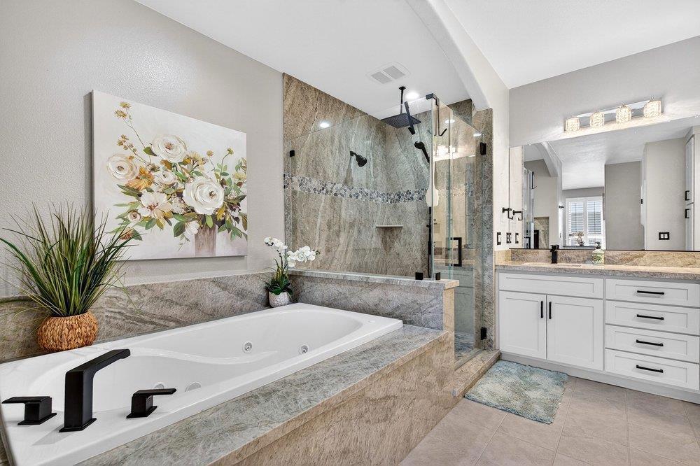 Welcome to refined living in the gated community of Ridgemark where comfort, style, and lifestyle come together seamlessly. This beautifully remodeled single-story home, originally built in 1990, has been thoughtfully upgraded with no detail overlooked. At the heart of the home is a stunning, top-of-the-line kitchen featuring new custom cabinetry, sleek quartz countertops, and premium appliances designed for both everyday living and unforgettable entertaining. Situated on an expansive corner lot, this property offers incredible flexibility, including a possible ADU with its own private entrance, complete with a bedroom, bathroom, living space, and kitchenette perfect for multigenerational living or guests. Step outside to your own private paradise. The entertainers backyard is truly exceptional, showcasing a beautiful slate sitting area, sparkling pool and spa, and a charming gazebo all creating the perfect setting to relax or host under the open sky. With both home and pool solar, youll enjoy energy efficiency without compromise. Living in Ridgemark means access to golf, dining, and scenic walking trails offering a lifestyle that feels like a retreat every single day.
