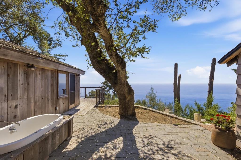 Set along one of Big Sur's iconic ridges, just minutes from Highway One, this 1950's 1 bed, 1 bath cottage has timeless charm and undeniable potential. Filled with abundant natural light, the home features modern amenities, terracotta, redwood, and brick accents, and ample windows that frame spectacular 180-degree ocean and whitewater views. A light-filled sunroom welcomes you in and flows into the living room, where vaulted wood ceilings and ocean-facing windows create a warm, elevated atmosphere. At the center, a large brick-faced fireplace adorns the space, with the kitchen appointed with a Wolf stove and Sub-Zero refrigerator positioned to the right, and seamless access to the outdoors on the left. The property is enhanced by a thriving citrus orchard and benefits from Partington Ridge's Mutual Water system, ensuring a reliable, year-round source of fresh water. A spacious deck and patio invite outdoor living, while a paved, gated road provides both ease and privacy to the home itself. Truly an inspiring canvas, whether through preservation or thoughtful updates, this property is like no other.