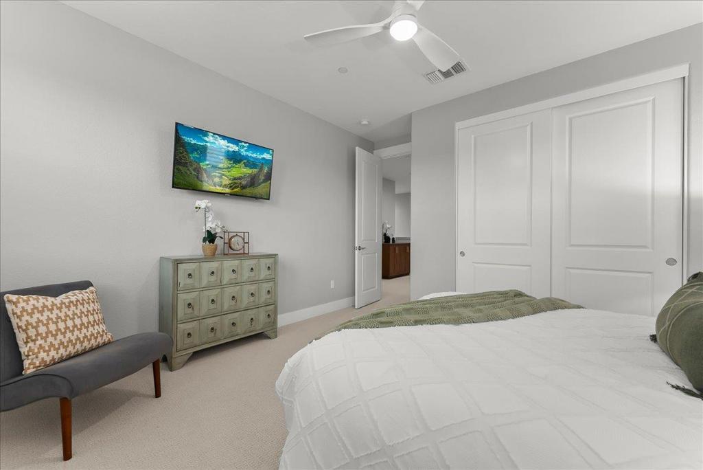 At just 11 years old, this well-maintained home is practically brand new, and its prime location at the end of a row and toward the back of the community makes it among the best in the area. The convenient downstairs fourth bedroom is a needed addition for guests or extended family. Warm finishes make everyone feel at home and the kitchen is open to the dining and family areas so the chef never feels separated from the action. The formal living room with French sliding doors onto the balcony provides additional entertaining space. The top floor includes the primary retreat with resort-style bathroom as well as the other two bedrooms and oversized laundry room with plenty of storage. You're just steps away from the community pool and within walking distance of shops and restaurants in addition to the easy access to 680 and 580. Don't let this dream home get away!