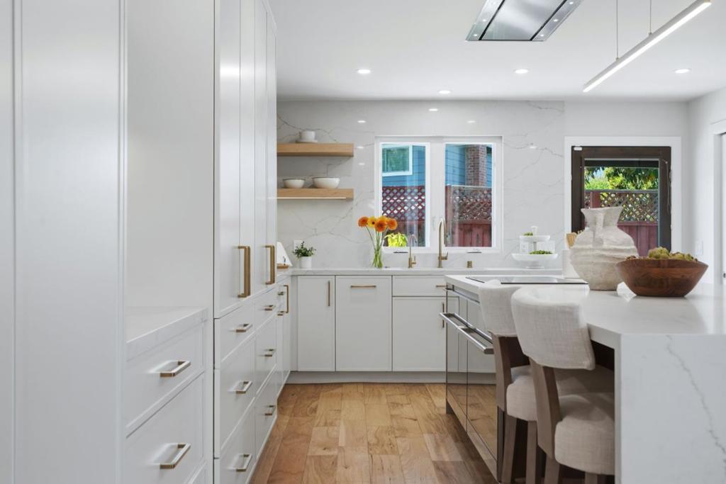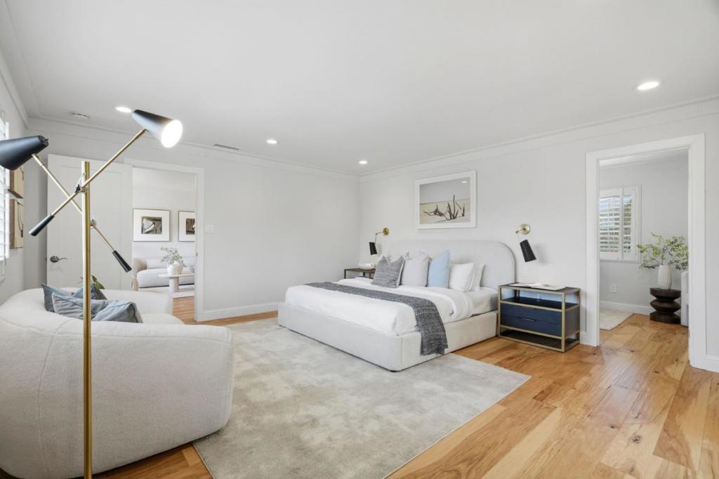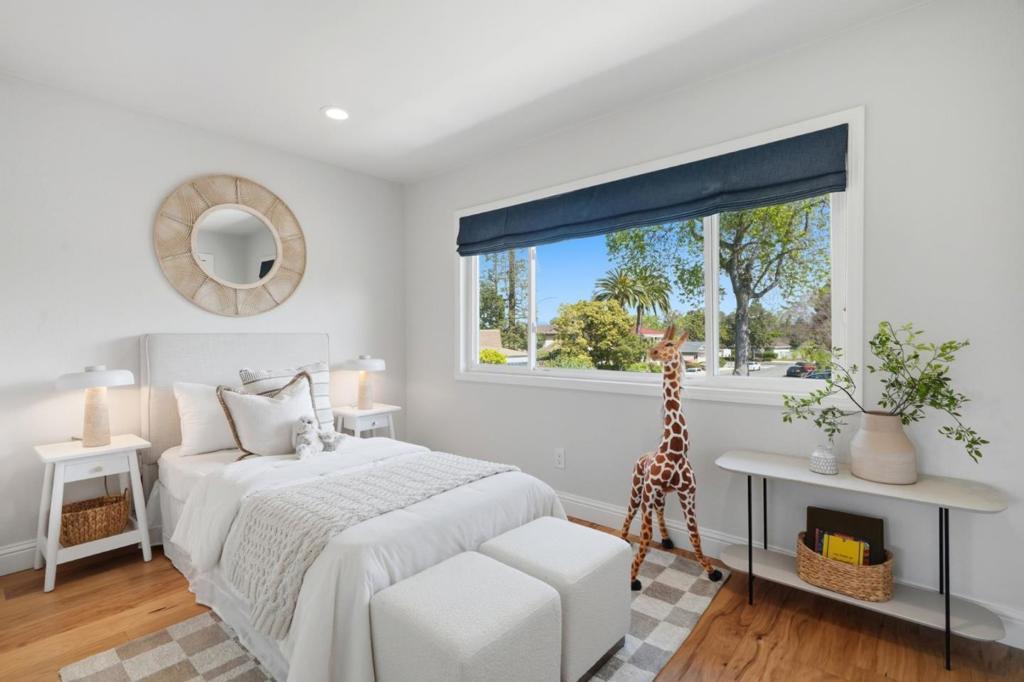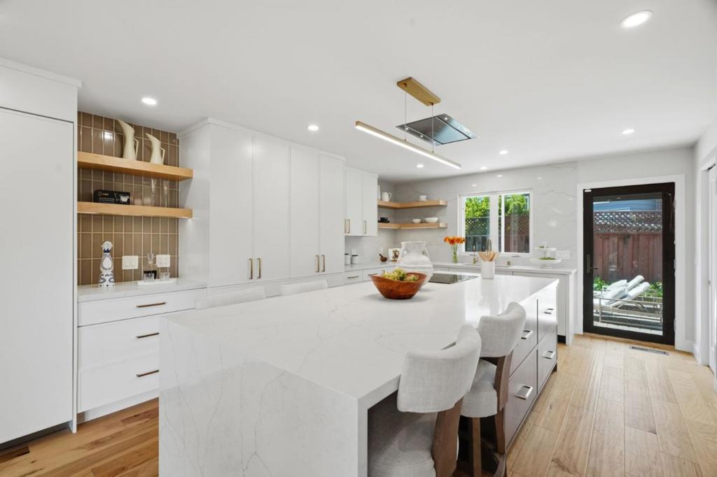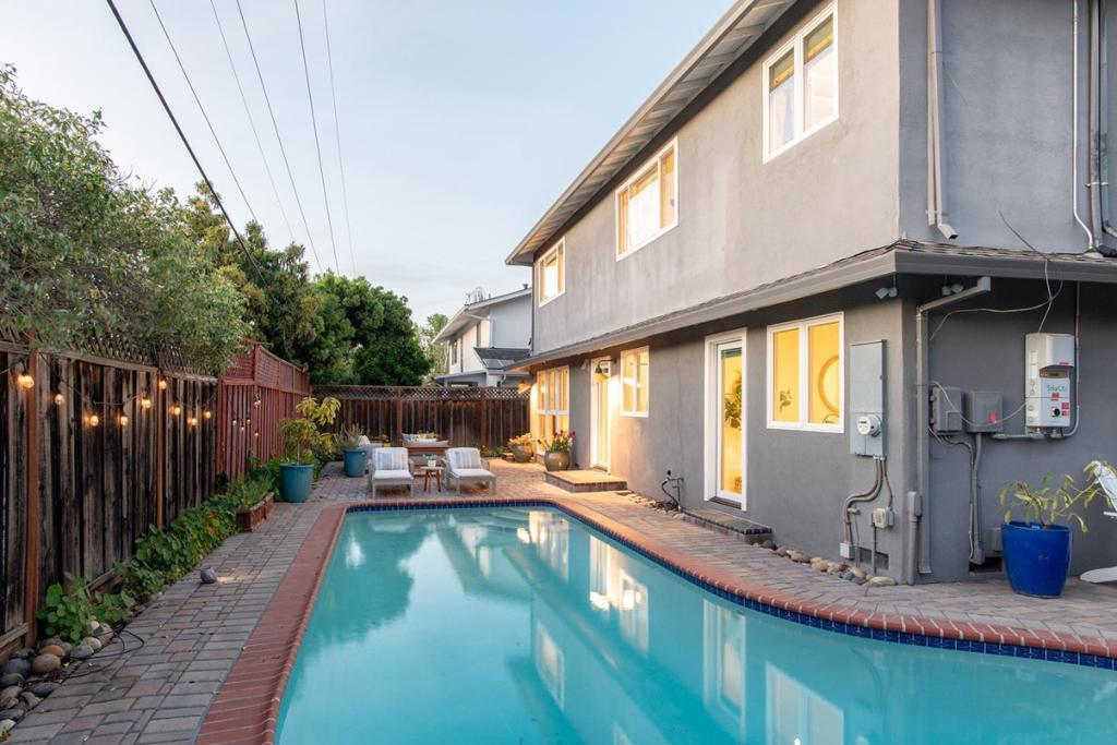 CUL-DE-SAC RETREAT WITH POOL, CLOSE TO EVERYTHING | Showcasing meticulously redesigned spaces, this residence on a serene Cumberland South cul-de-sac embraces intentional modern living. The sun-drenched floorplan optimizes versatility, ideal for multigenerational families, while multiple outdoor retreats provide ample room to play, relax, and entertain. Floor-length windows grace sizable living and dining rooms, anchored by a glamorous kitchen with waterfall island, custom cabinetry, and premier appliances. A primary suite is found on each level, including an upstairs sanctuary with home office and brilliant spa bath. Secluded outdoor spaces offer a private courtyard, freeform pool with paver terrace, and edible garden with mature fruit trees. Other highlights include an upper family room, second office/fifth bedroom and garage with wiring for two EV chargers. The full list of details is astounding! Stroll to Cumberland Elementary and pickleball and tennis at Las Palmas Park. Moments from downtown Sunnyvale, Cityline, tech centers, and prized schools like Sunnyvale Middle and Homestead High (buyer to verify). Enjoy an exuberant Silicon Valley lifestyle with this one-of-a-kind residence!