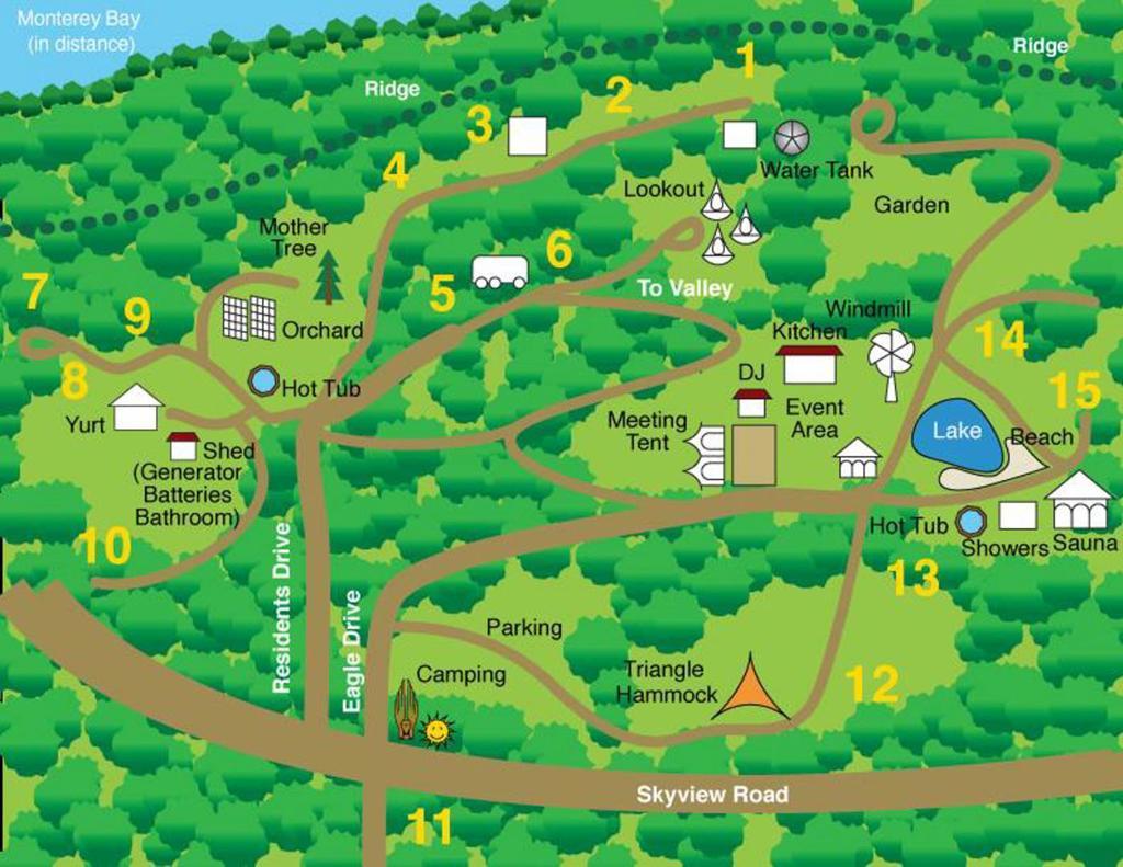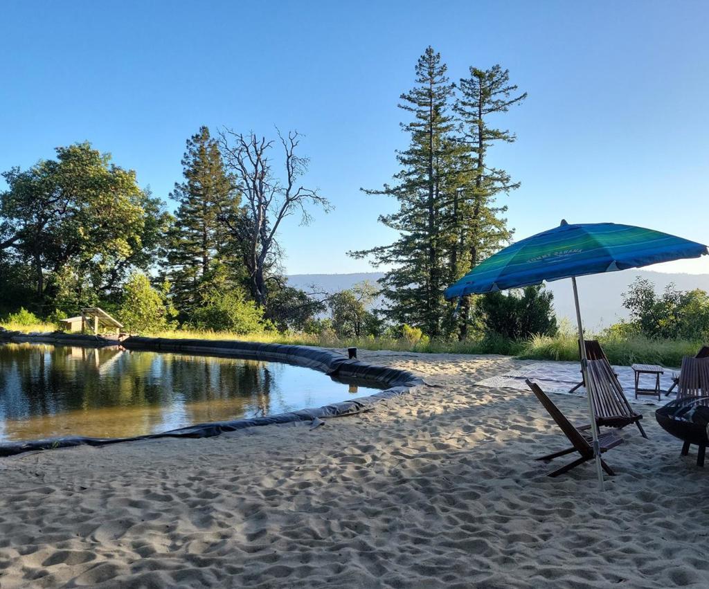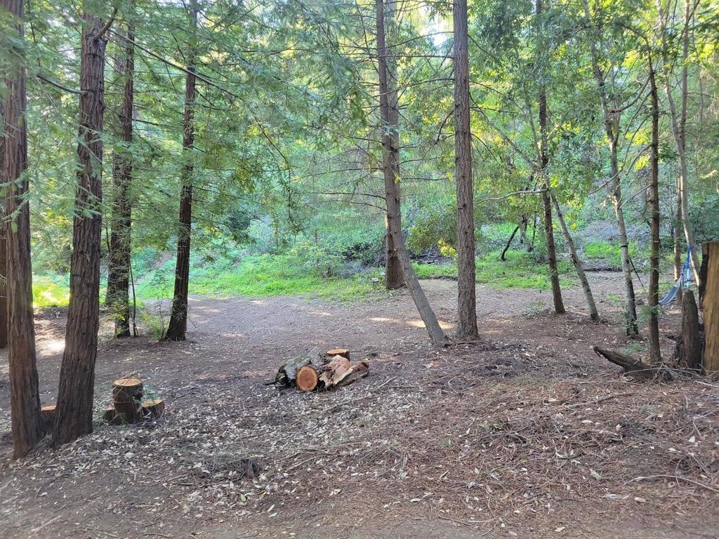 This 23-acre hidden gem is home to majestic oak trees, ancient redwoods and sweeping mountain views with unforgettable sunsets and endless stargazing. A rare blend of privacy, usable land, and natural beauty, this is a place to create something truly special. The land features multiple RV sites and camping areas, making it ideal for guests, retreats, or extended stays. A stunning 14-ft-deep pond surrounded by imported sand, creating a resort-like setting for swimming, lounging, and enjoying warm sunny days. Existing infrastructure includes a productive well, solar system, backup generator, propane, and high-speed satellite internet. The property includes a 26' Rainier yurt with radiant heated floors and Brazilian Ipe wood flooring. Interested in gardening or permaculture? The property includes a deer-fenced garden with 22 fruit trees and full sun exposure throughout the day, offering excellent growing conditions and space for animals or expanded agricultural use. Located approximately 35 minutes from Boulder Creek, the property is accessed by a scenic 15-minute drive along a combination of paved, gravel, and dirt roads, offering a balance of accessibility and seclusion. A truly unique property where privacy, views, sun, and water come together to create a one-of-a-kind retreat.