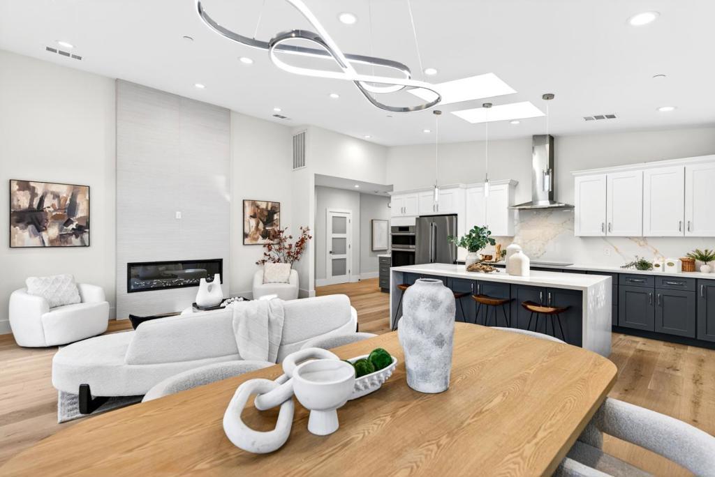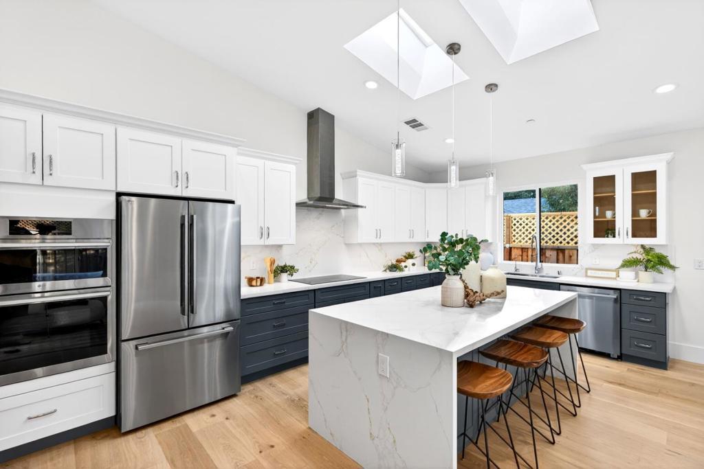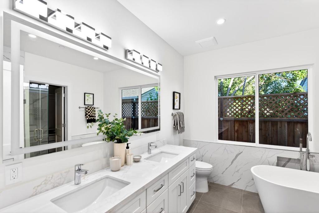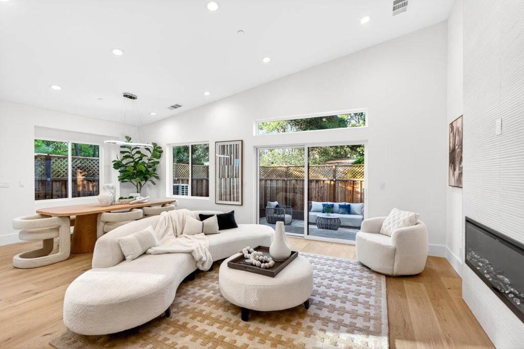 Brand-new construction with owned solar, nestled on a calm and quiet street with a neighborhood park and playground at the end, this beautifully crafted gem blends refined modern style with everyday comfort. Ideally located near Top-Rated schools, major tech campuses and just about a mile from Downtown Sunnyvale and its Caltrain station, the home offers both convenience and an exceptional lifestyle. Inside, engineered European white oak floors, high vaulted ceilings, recessed lighting, dual-pane windows and skylights fill the home with natural light. Heat/AC, along with a cozy fireplace, provide year-round comfort. The kitchen is thoughtfully designed with high-end stainless steel appliances, quartz countertops/waterfall island, vast cabinetry and under-cabinet lighting. All bedrooms are well-appointed with their own closets, while the primary suite features a spa-like en-suite bath with dual sinks, tub, shower and grand walk-in closet with custom organizers. Additional highlights include a beautifully finished pavers driveway, two-car garage with a 240V EV charger, and a sun-drenched backyard with a stylish pavers patio. With easy access to HWY 101 and Lawrence Expy, this is a rare opportunity to be the very first owner of one of Sunnyvales loveliest new homes. It will go FAST!