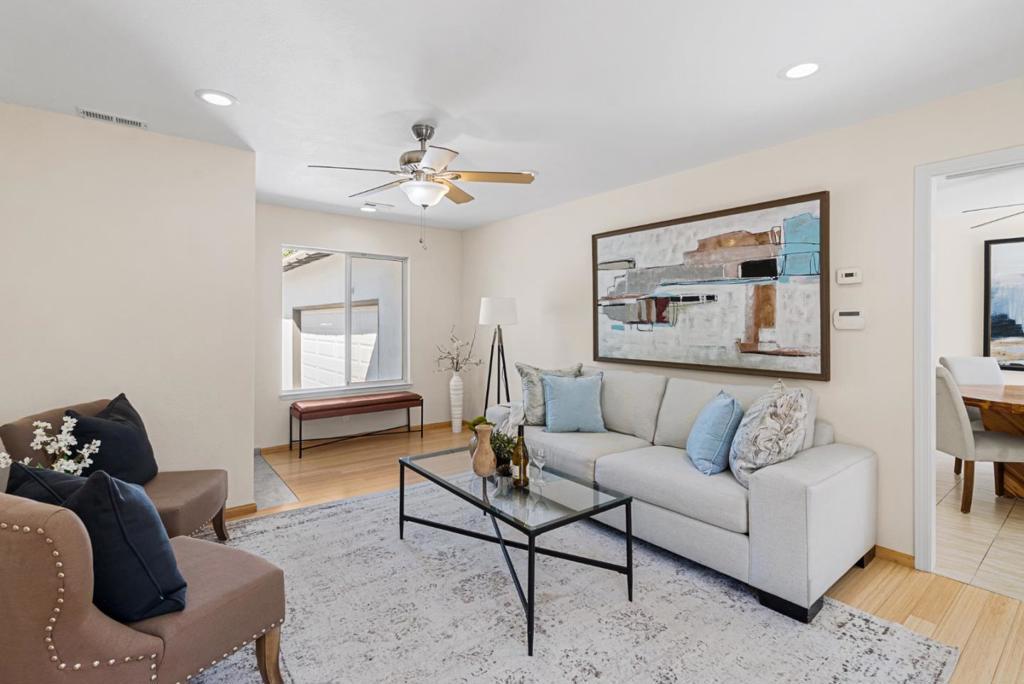 Beautifully remodeled home is ready for its next owner! Situated in one of Sunnyvale's most sought after neighborhoods, this home boasts brand new landscaping in both the front and backyard, fresh interior and exterior paint, remodeled bathrooms, and new hardwood floors in the primary bedroom. The kitchen has been thoughtfully upgraded with new quartz countertops, a new cooktop, and sink creating a clean and modern space to cook and entertain. The open floor plan offers a seamless flow, perfect for both everyday living and hosting. Located within a top rated school district and just minutes from major tech companies, highways, shopping, and entertainment, this home offers both convenience and comfort. This one won't last long! Don't miss out!