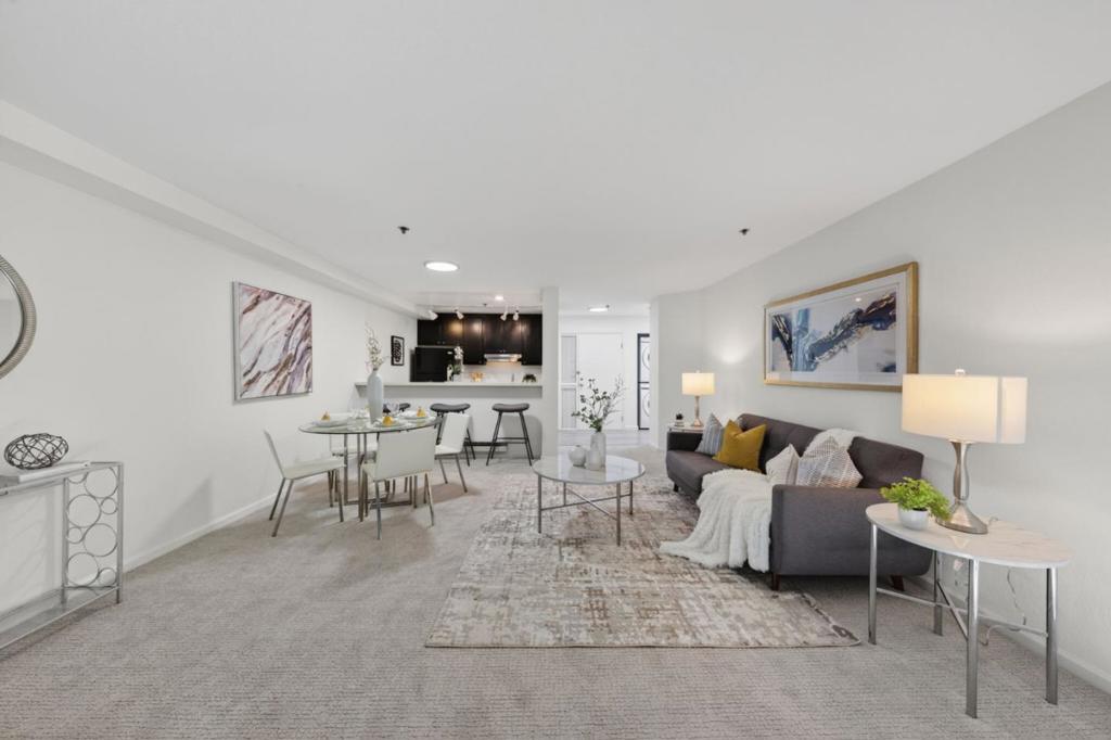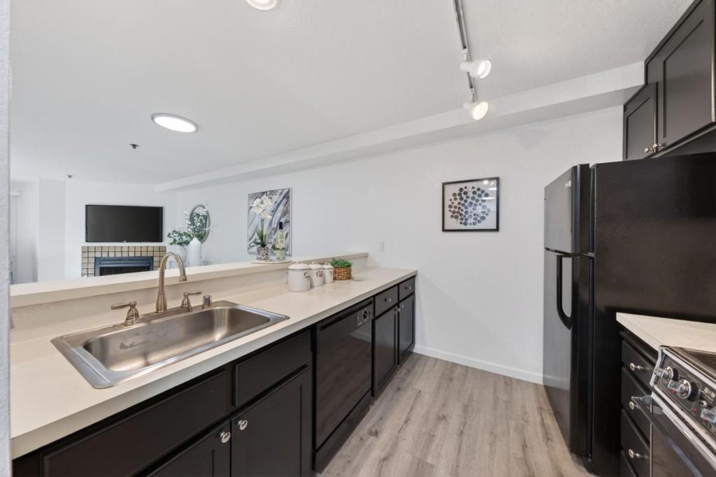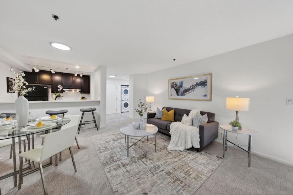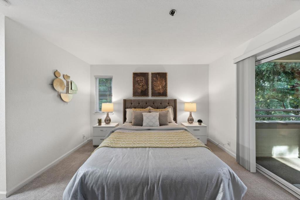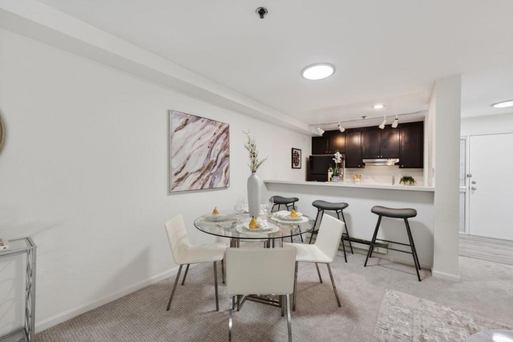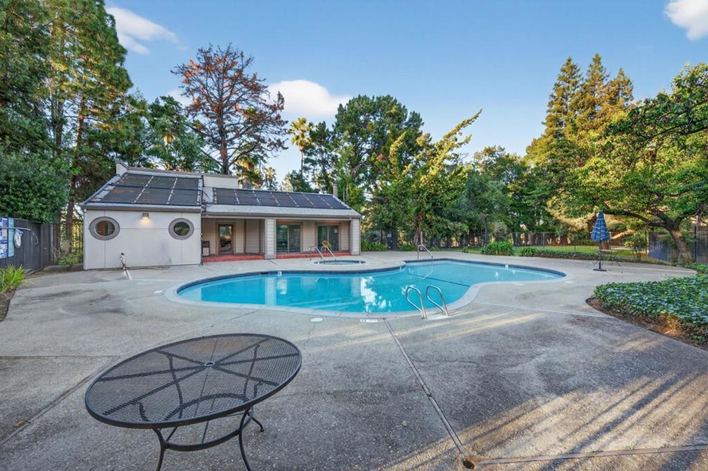 Situated in the desirable Sunnyvale Fairways community overlooking the Sunken Gardens Golf Course, this move-in ready, condo presents a fantastic starter opportunity. The open-concept floor plan seamlessly connects the kitchen, dining, and living areas, creating an ideal space for both everyday living and entertaining. The spacious bedroom features a large walk-in closet and en-suite bathroom, while multiple sliding glass doors from both the living area and bedroom lead to a private patio, perfect for enjoying warm summer evenings. Recent upgrades include fresh interior paint, updated light fixtures, new carpet, and a newer thermostat. Additional conveniences include an in-unit washer and dryer, one dedicated underground parking space, and ample guest parking. Community amenities include a pool, spa, clubhouse, and playground, with HOA dues covering water and garbage. Ideally located just minutes from Apple Park and major Silicon Valley tech campuses, with easy access to commute routes, shopping, and dining. Do not miss the opportunity to live in the highly sought-after Sunnyvale Fairways community.