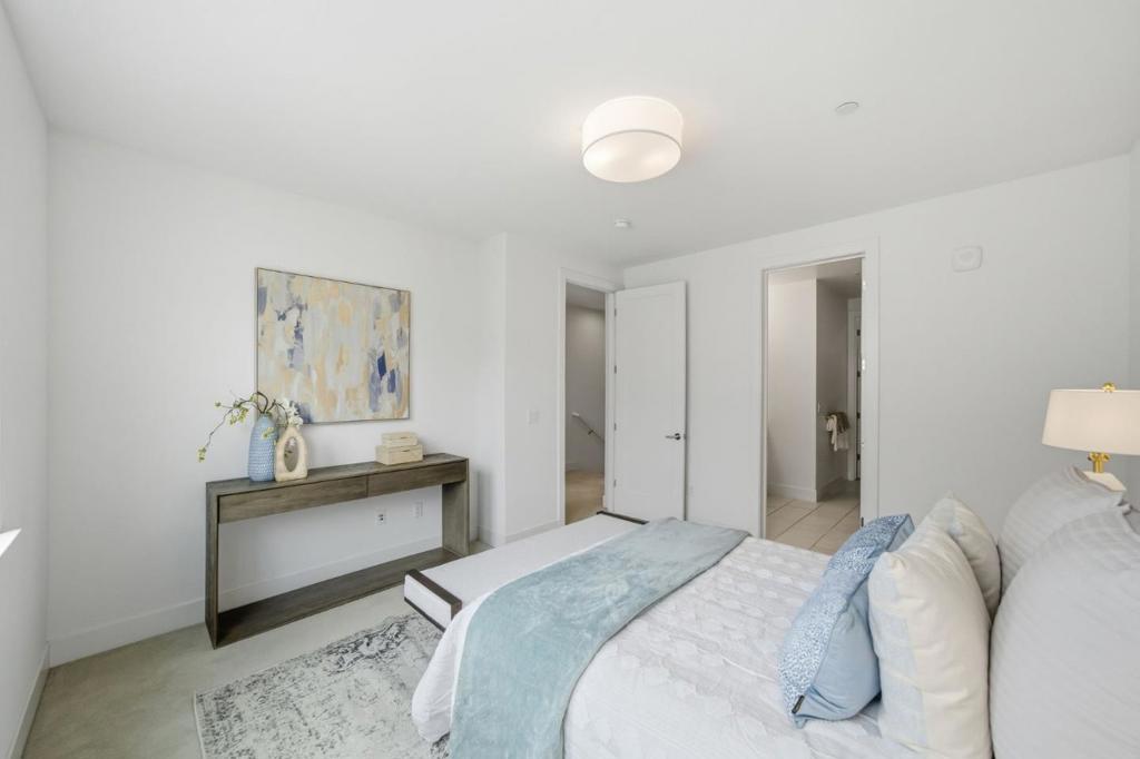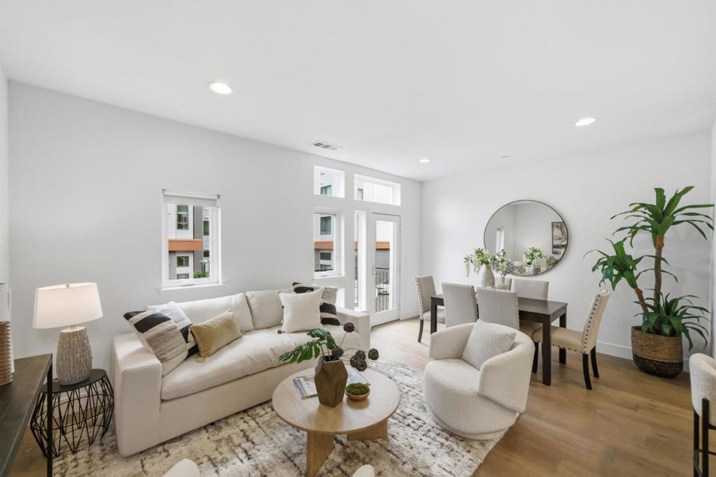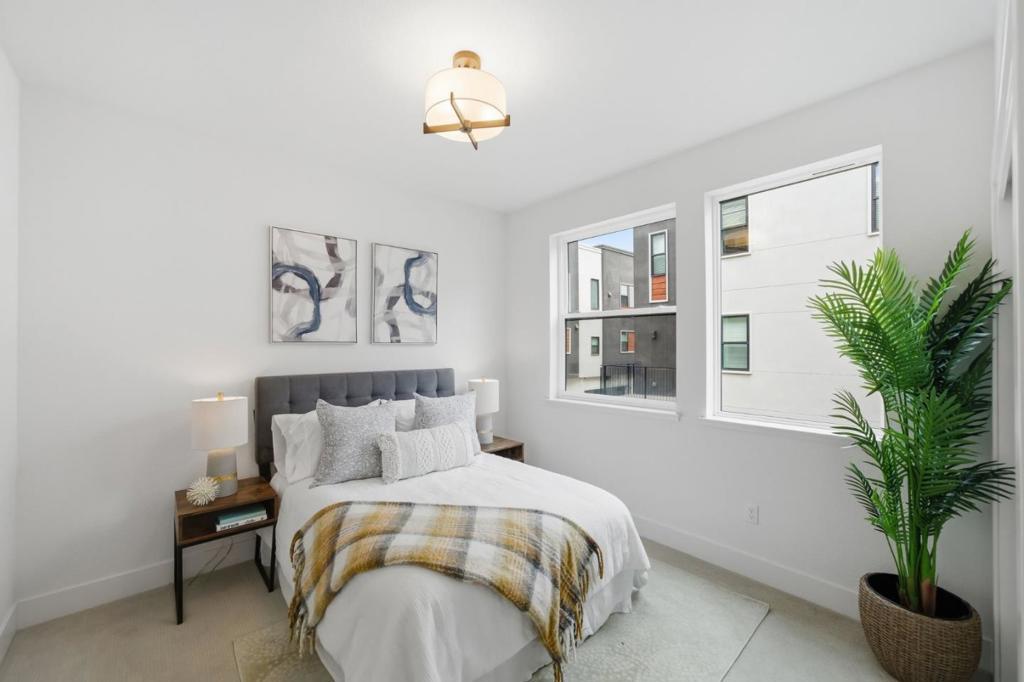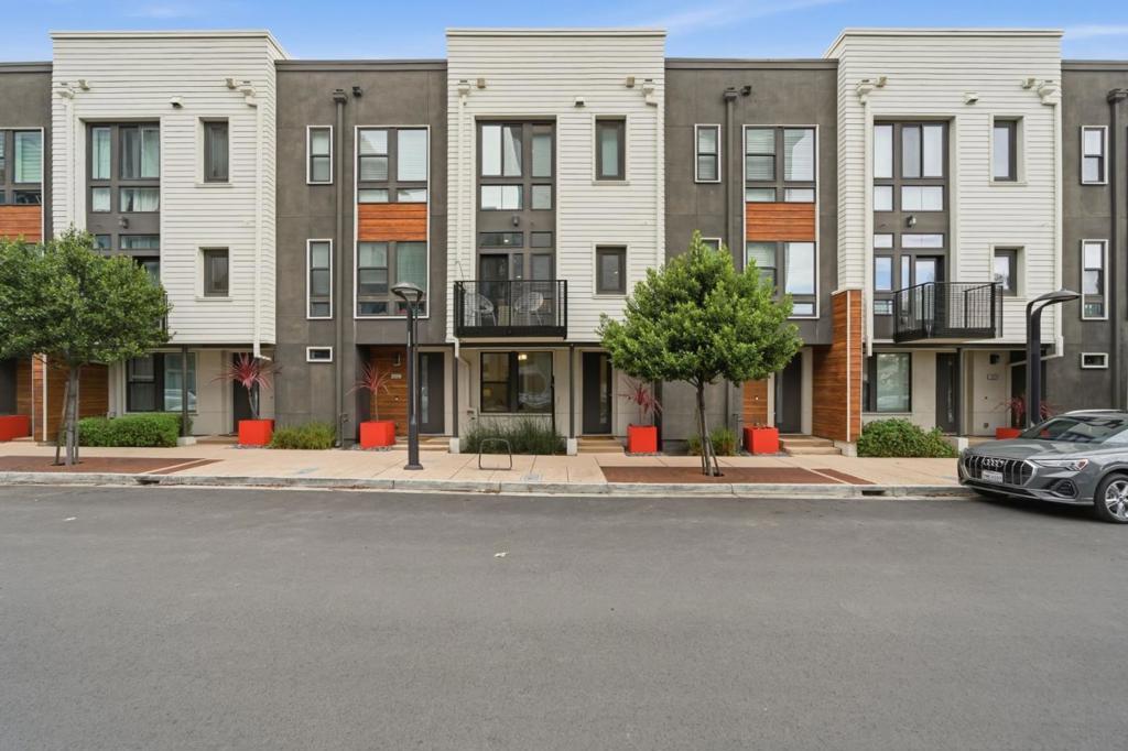 Built in 2020, this upgraded townhome offers 4 bedrooms and 4 bathrooms, including a full bedroom and bath on every level, ideal for multigenerational living. Enjoy abundant natural light and an open-concept layout. The kitchen features stainless steel Bosch appliances, a gas stove, modern finishes, and a large island with counter seating. The spacious primary suite offers dual sinks, a large shower, and a walk-in closet. Two private balconies provide additional outdoor space, and laundry is conveniently located inside. The finished garage features epoxy flooring, and thoughtful smart-home upgrades include Lutron Caseta lighting, Apple Home Key-compatible smart locks, hardwired Ethernet throughout, gigabit fiber availability, and EV charging readiness. Enjoy low HOA dues and an unbeatable Downtown Fremont location near BART, major commute routes, Whole Foods, Safeway, Trader Joes, Target, Meta/Google/Apple shuttle stops, parks, and popular dining along the State Street corridor, with a variety of local favorites just moments away.