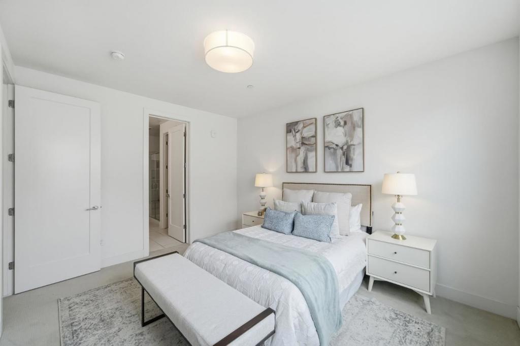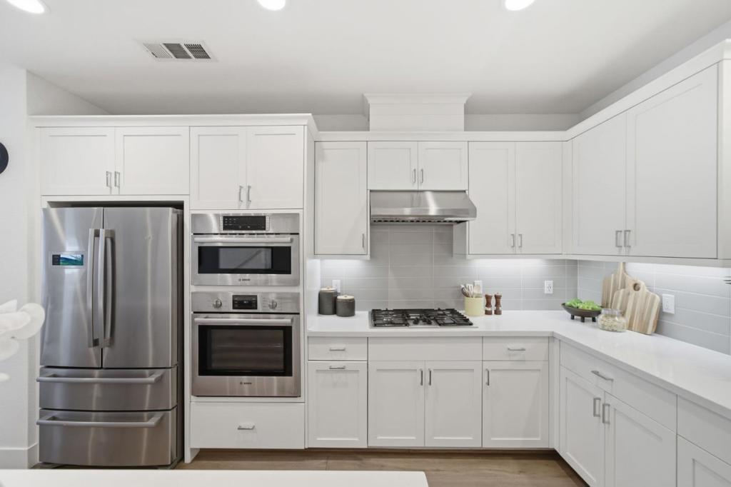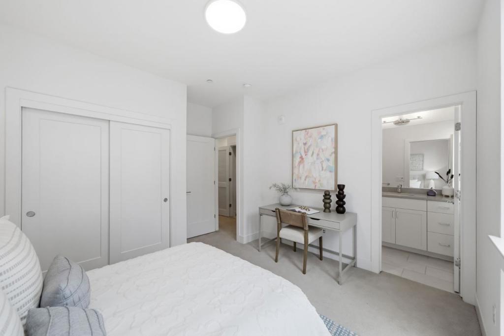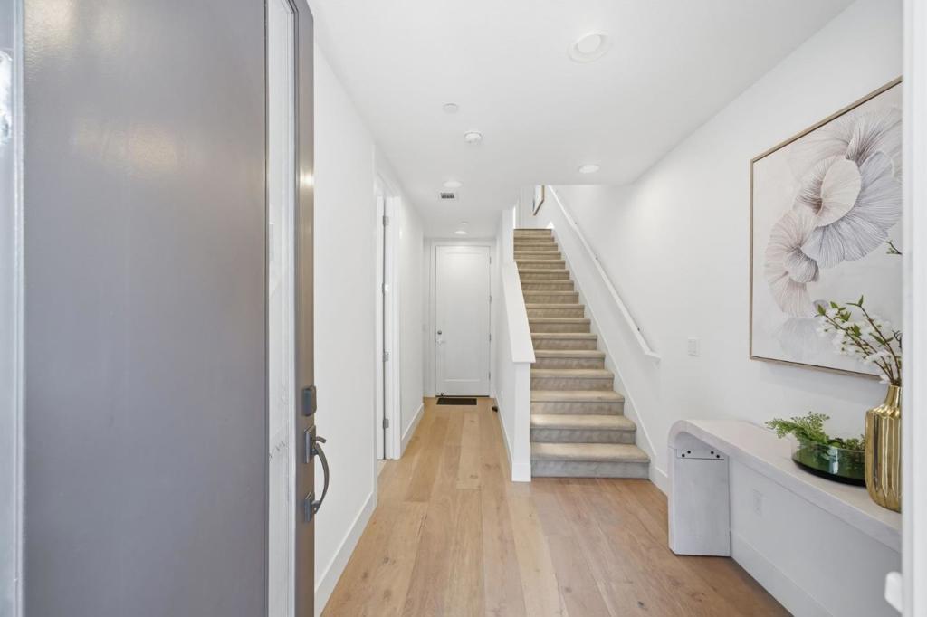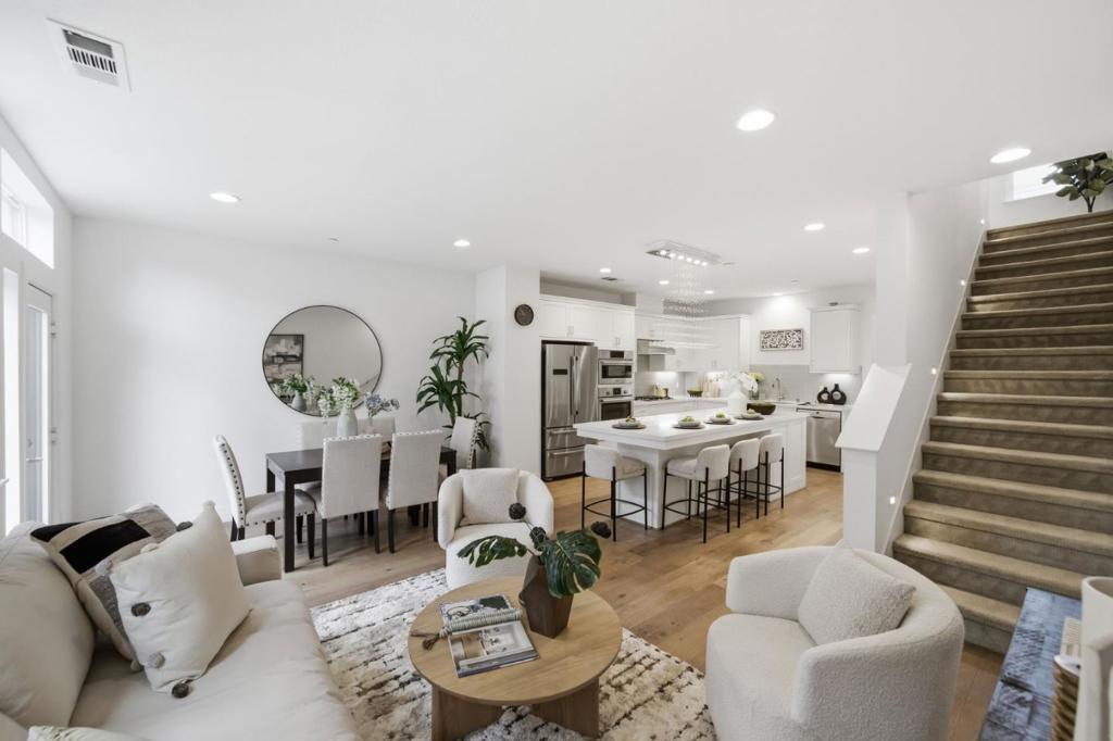 Built in 2020, this upgraded townhome offers 4 bedrooms and 4 bathrooms, including a full bedroom and bath on every level, ideal for multigenerational living. Enjoy abundant natural light and an open-concept layout. The kitchen features stainless steel Bosch appliances, a gas stove, modern finishes, and a large island with counter seating. The spacious primary suite offers dual sinks, a large shower, and a walk-in closet. Two private balconies provide additional outdoor space, and laundry is conveniently located inside. The finished garage features epoxy flooring, and thoughtful smart-home upgrades include Lutron Caseta lighting, Apple Home Key-compatible smart locks, hardwired Ethernet throughout, gigabit fiber availability, and EV charging readiness. Enjoy low HOA dues and an unbeatable Downtown Fremont location near BART, major commute routes, Whole Foods, Safeway, Trader Joes, Target, Meta/Google/Apple shuttle stops, parks, and popular dining along the State Street corridor, with a variety of local favorites just moments away.