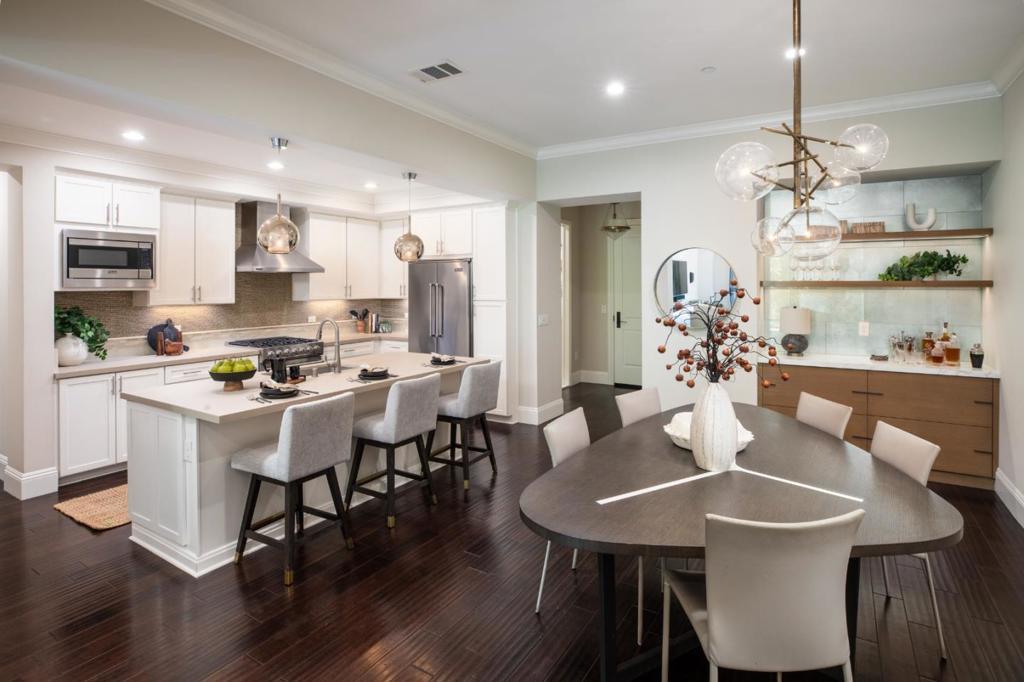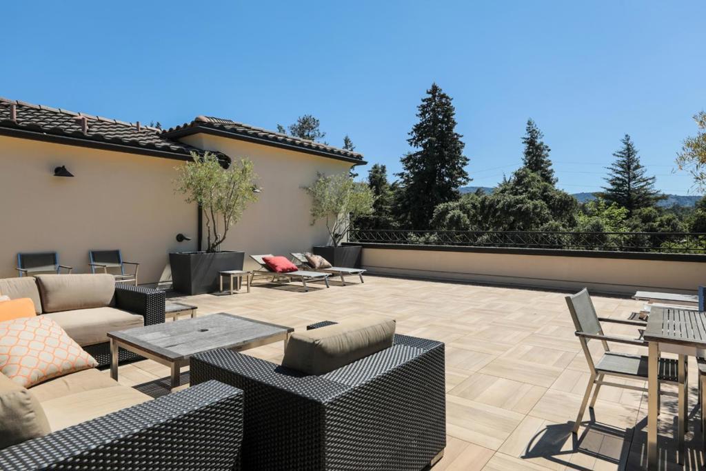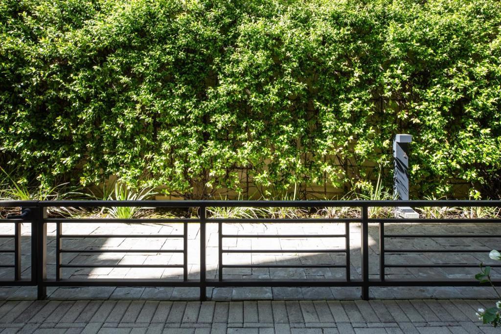 Refined downtown Los Altos living with rare privacy. Located in one of the premier residential buildings, this sophisticated ground-floor residence offers ~1,714 sq ft with 2 bedrooms, a dedicated office/den and 2 baths. Privately positioned at the rear, the home enjoys a quiet, green outlook just moments from shops, dining, and local amenities. Tall ceilings, espresso-hued engineered wood floors, crisp millwork, and designer lighting define the interiors. The open-concept kitchen, dining, and living areas feature white cabinetry, soapstone countertops, Viking stainless appliances, and an island with seating. French doors open to a private patio framed by a lush living wall, creating seamless indoor-outdoor flow. The primary suite includes a dual-entry walk-in closet and spa-inspired marble bath, separate vanities, and frameless shower. Additional features include California Closets designed storage, custom window treatments (Conrad), central A/C, laundry room w/sink. Exclusive amenities include video security, concierge service, central lobby, fitness center, private club room, and rooftop terrace with grill. Secure underground parking includes two spaces with optional EV charging. Los Altos schools. Experience luxury, convenience, and community in this stunning downtown condo.