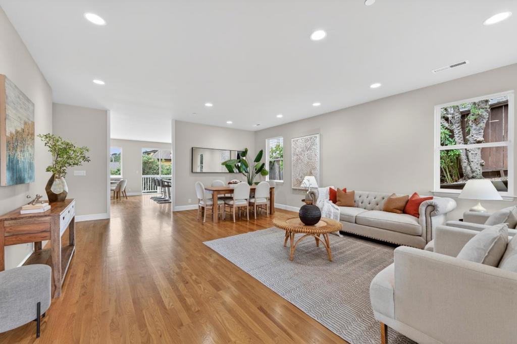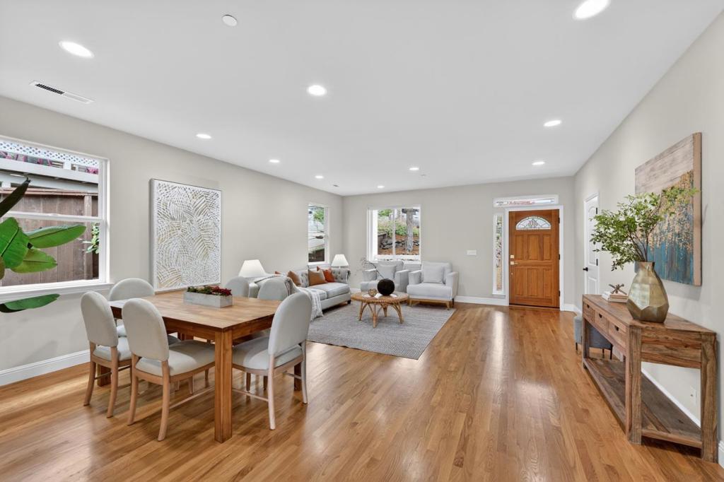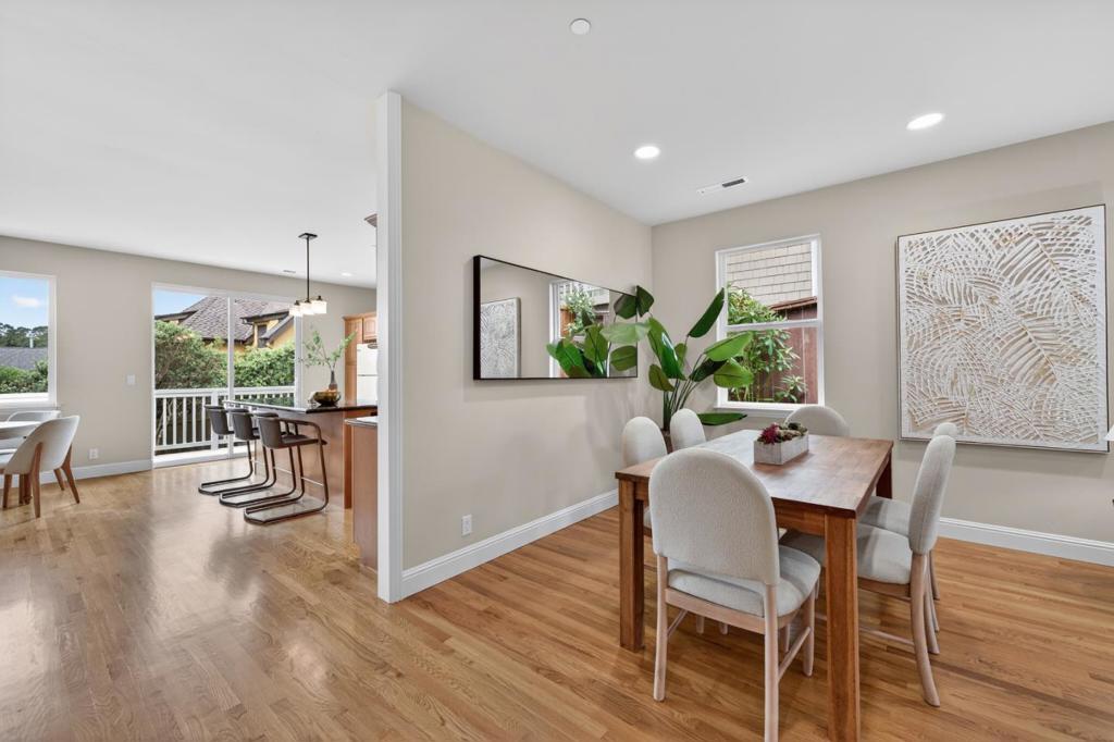 Tucked into the quiet hills of El Granada, this charming 2 bedroom, 2 bath home offers 1,410 sq ft of comfortable coastal living. Hardwood floors are featured in the living room, kitchen, and dining area, where a spacious layout and natural light create a warm, inviting atmosphere. The open kitchen showcases granite countertops and flows seamlessly into the dining space, complete with a gas fireplace that adds comfort and character for everyday living or entertaining. Step outside to a private backyard with a deck, ideal for relaxing or gathering, with partial ocean views. A two car garage provides added convenience. Located just minutes from Pillar Point Harbor, enjoy fishing, bird watching, and whale watching excursions. Nearby Princeton and Half Moon Bay offer beautiful beaches and well known dining spots, including Half Moon Bay Brewing Company, Barbara's Fishtrap, and Jettywave Distillery. A wonderful opportunity to enjoy coastal living in one of El Granada's most peaceful settings.