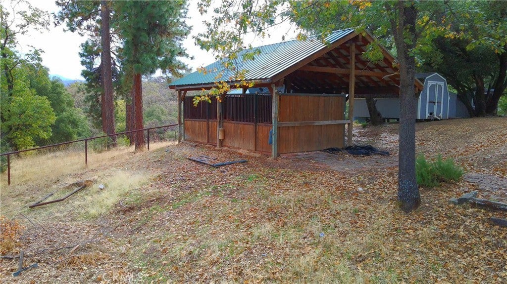 Perfect Potential located in the Pines above Midpines! Close to Yosemite National Park, this Unique home has 2,120 Sq. Ft. with 3 Bedrooms & 3 Bathrooms. Tasteful Red Brick floors adorn most of the interior rooms making this special home one of kind. Large kitchen/ dining area with Oak cabinets & large picture windows. Extra large great/ living room with an entire wall dedicated to storage, finished off with a woodstove installed in the oversized red brick fireplace. Master bedroom is just waiting for you to add some TLC & your finishing touches; walk out onto the balcony & experience awesome views of the mountains rising above the Wild & Scenic Merced River Drainage. Vintage, roomy, master bathroom, complete with antique toilet, clawfoot bathtub, large mirror, & old fashion ceiling fan looks like a scene straight out of a Western Movie Set. Spacious back deck with beautiful views of the Sierras, could also use some TLC. This 2.53 Acre parcel also has a detached garage, multiple storage sheds, & a 2 stall horse barn. Possibilities are endless!