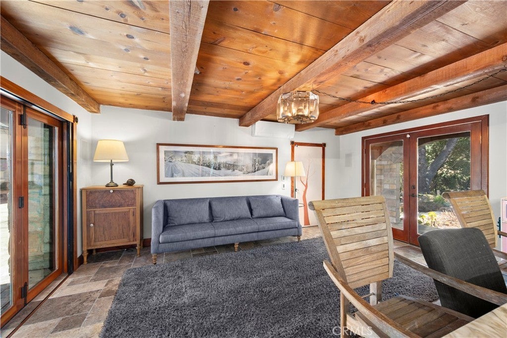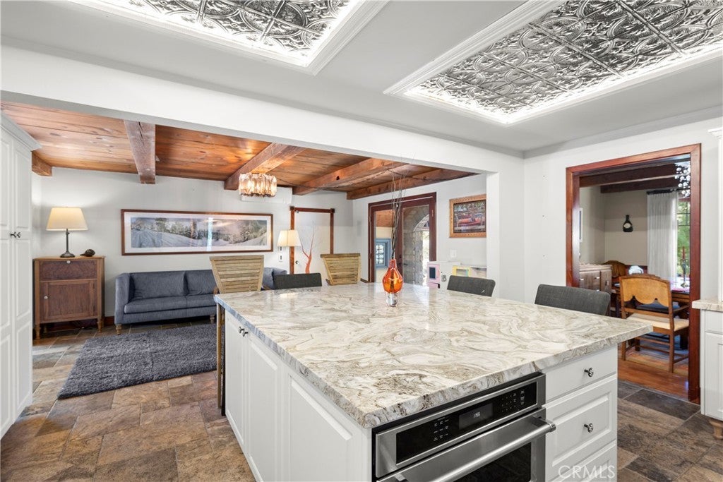 Beamed Ceilings, Separate/Formal Dining Room, Living Room Deck Attached, Stone Counters, Loft, Wine Cellar, Workshop