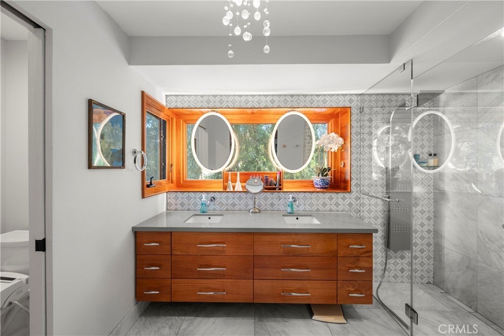 Welcome to this beautifully updated 4 bedroom, 3.5 bathroom home that blends timeless charm with modern upgrades on over 2.4 acres of private land. This large 2,504 square foot home boasts two spacious living spaces, a formal dining room, library, primary suite and an attached ADU above its 3 car garage. Solar for whole house PAID OFF for off grid living and chargers for your EVs. The gourmet kitchen has been tastefully renovated with high end finishes, stainless steel appliances, and ample countertop space, seamlessly flowing into the living room and outdoor areas - ideal for entertaining. All bathrooms are fully upgraded with dual sinks and walk in showers and heated floors. Off the living room, a private wine cellar is perfect for collectors or entertainers alike. Builder was meticulous in crafting the mahogany window casings, inlays for decor, and wood beamed ceilings. Truly must see to appreciate. Above the attached garage, is a quaint Granny Suite / ADU with its own kitchen, bedroom, and bathroom providing the perfect setup for guests or rental income. In addition to the main house, there is a spacious 2 car garage outbuilding for toys and recreation with 220 power (also on solar) connected. It also has a Gym and office which provides the shortest commute to your remote job site :) Just for fun, the owner also has a fully functioning wood shop complete with vacuum system and machinery. If you don't want all that extra space for the wood shop, check out the plans for a separate main floor master and/or second ADU. The grounds are truly magical. From your front door, you enjoy birds bathing in the pond and stream. Walking down from this picturesque setting, you come to the above ground pool and deck area ready to be reimagined. From the kitchen, you walk out a set of 10' folding doors to enjoy the outdoor kitchen and dining area where you can enjoy hosting in a more private setting. Surrounding the home is low maintenance turf perfect for pets. The home also has central HVAC to ensure year round comfort and energy efficiency.