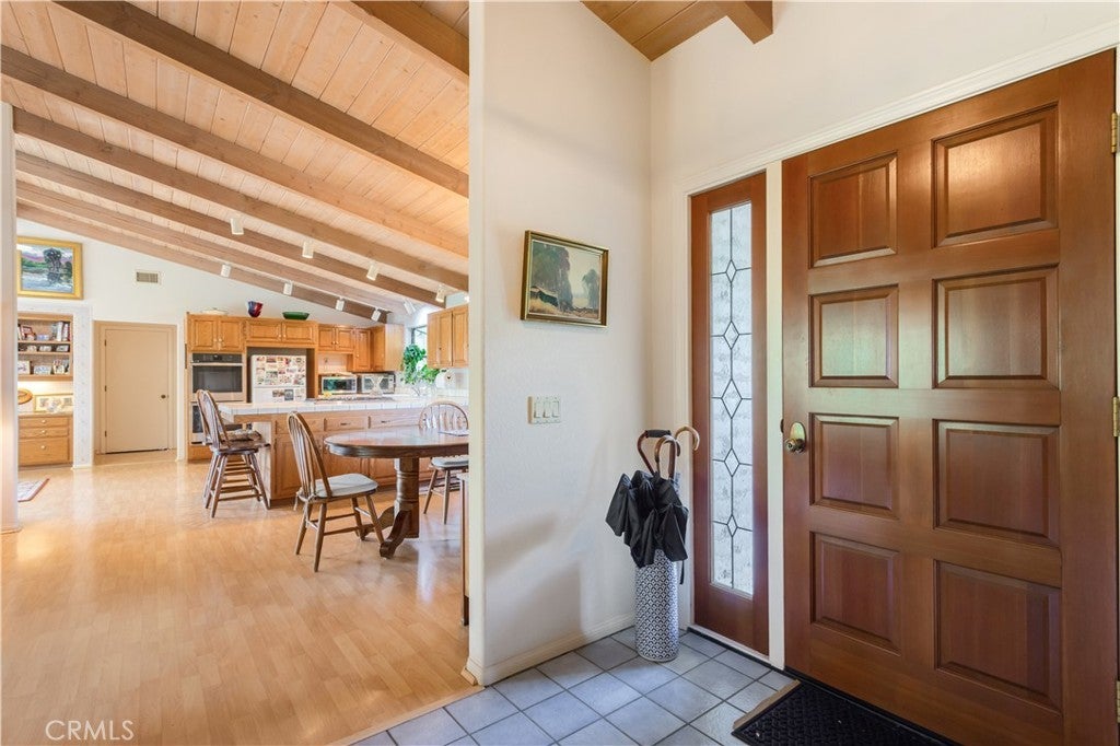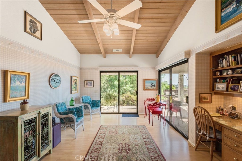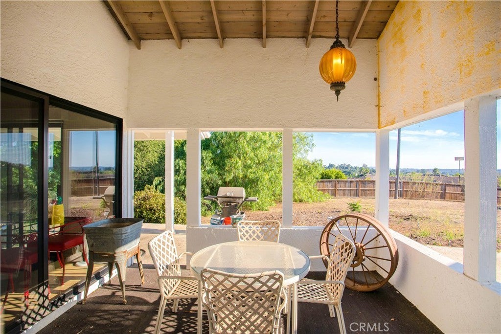 Opportunity, opportunity, opportunity! Opportunity abounds in this original sprawling single-story home in the rarely-on-the-market prestigious Tumble Creek Estates where renovated properties sell for well over a million dollars. This home features a total of 4 bedrooms, 3.5 bathrooms, and a 3-car garage (with a sink and toilet), all set on a very private and usable almost flat 1.17-acre private lot. The main residence is approximately 1,947 sq. ft. and has 3-bedrooms and 2 baths and boasts soaring wood-beamed ceilings. In addition to this square footage is an attached 1-bedroom, 1-bathroom studio which provides incredible versatility—ideal as an in-law suite, private office, art studio, or income-generating ADU, bringing the total square footage to around 2,250 sq ft. The open-concept kitchen, complete with a large wrap around counter with seating and stainless-steel appliances (range and double ovens are almost new), flows seamlessly into the oversized dining and family room with cozy fireplace—ideal for entertaining. The kitchen has two separate dining/eating areas plus a built-in desk. Outdoors, enjoy the peaceful privacy of your nearly flat lot with southwest-facing views toward Sleeping Indian. There's ample room to add a pool, workshop, or further customize the landscape to your vision. The covered rear patio and California sunroom offer extended outdoor living spaces, perfect for enjoying Fallbrook’s mild climate year-round. You are surrounded by million-dollar homes, plenty of room for expansion, and low HOA and taxes. Whether you're looking for a multi-generational estate, a forever home, or a property with income potential, this gem in Tumble Creek checks every box. This rare 1.17-acre property offers the best of upscale country living with the convenience of being just minutes from charming downtown Fallbrook—known as the Friendly Village for its warm community, rolling hills, wineries, golf, local casinos and near the 15 Freeway. Don't miss this one-of-a-kind opportunity—schedule your private tour today!